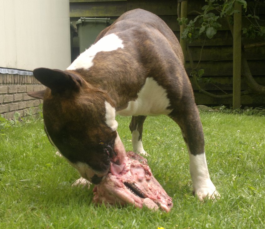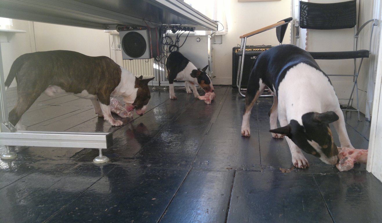 Trui en Han haalden gisteren bij de biologische groeneweg slager 3 giga botten voor onze kids. Zonder een grommetje of snauwtje met zijn drieën intensief elk een bot naast elkaar kauwen: wat zijn we toch een fijn en stabiel roedel!