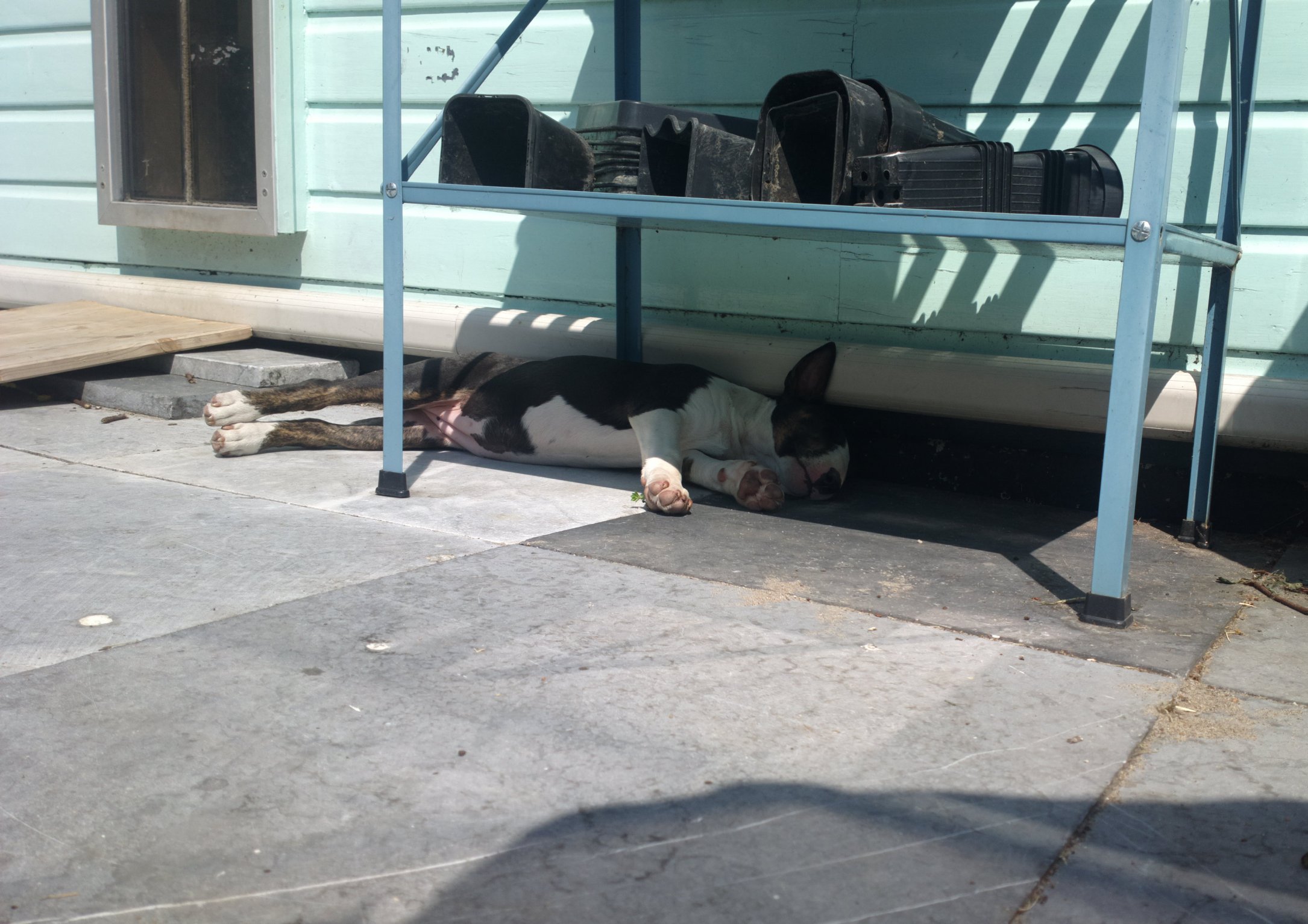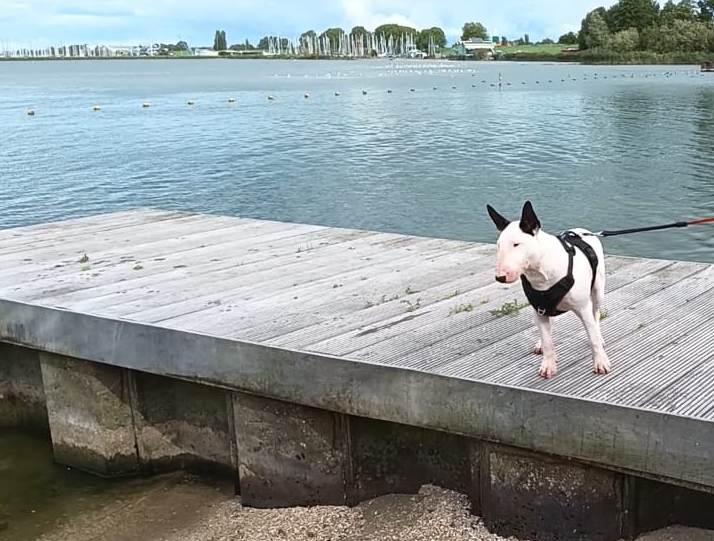 Sky (Rhydaman) is on vacation with us in Westzaan, Bull Terrier party... Viewer warning: very loud music ;-)