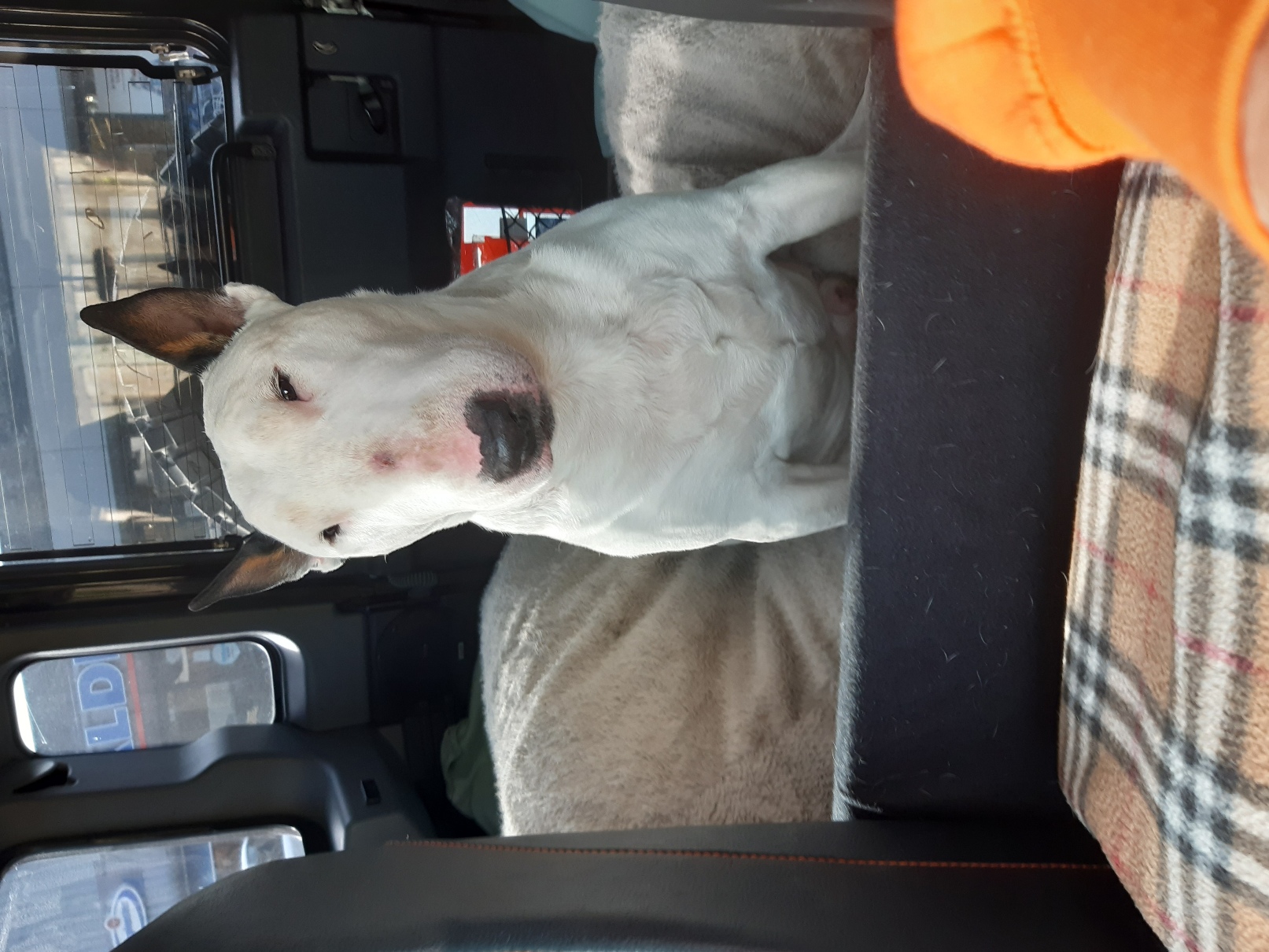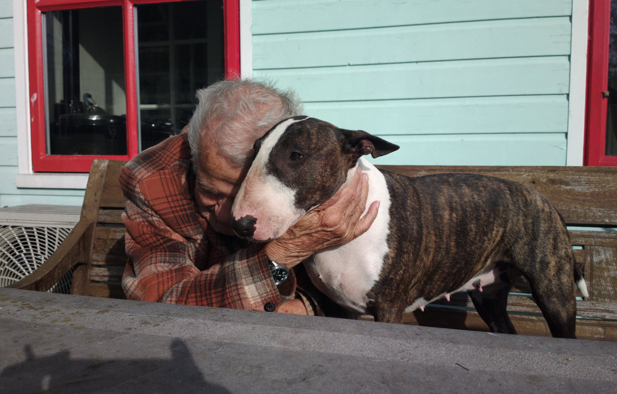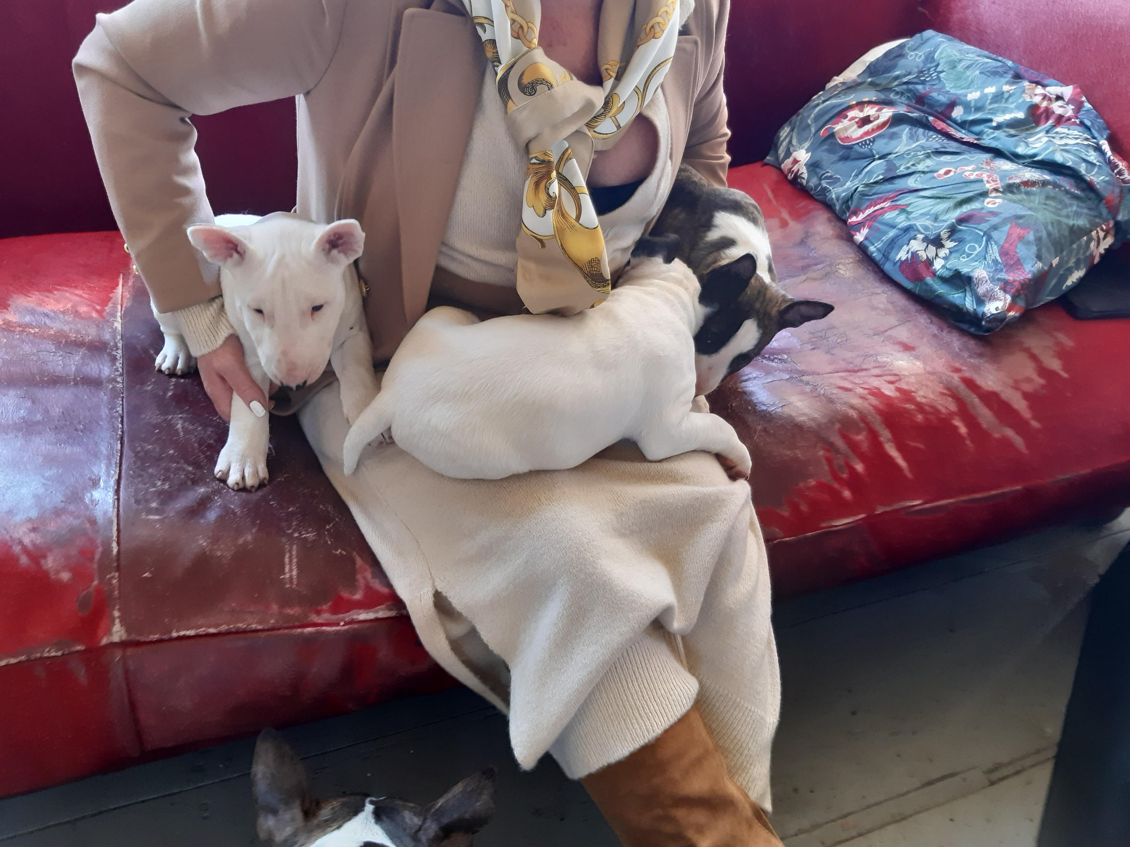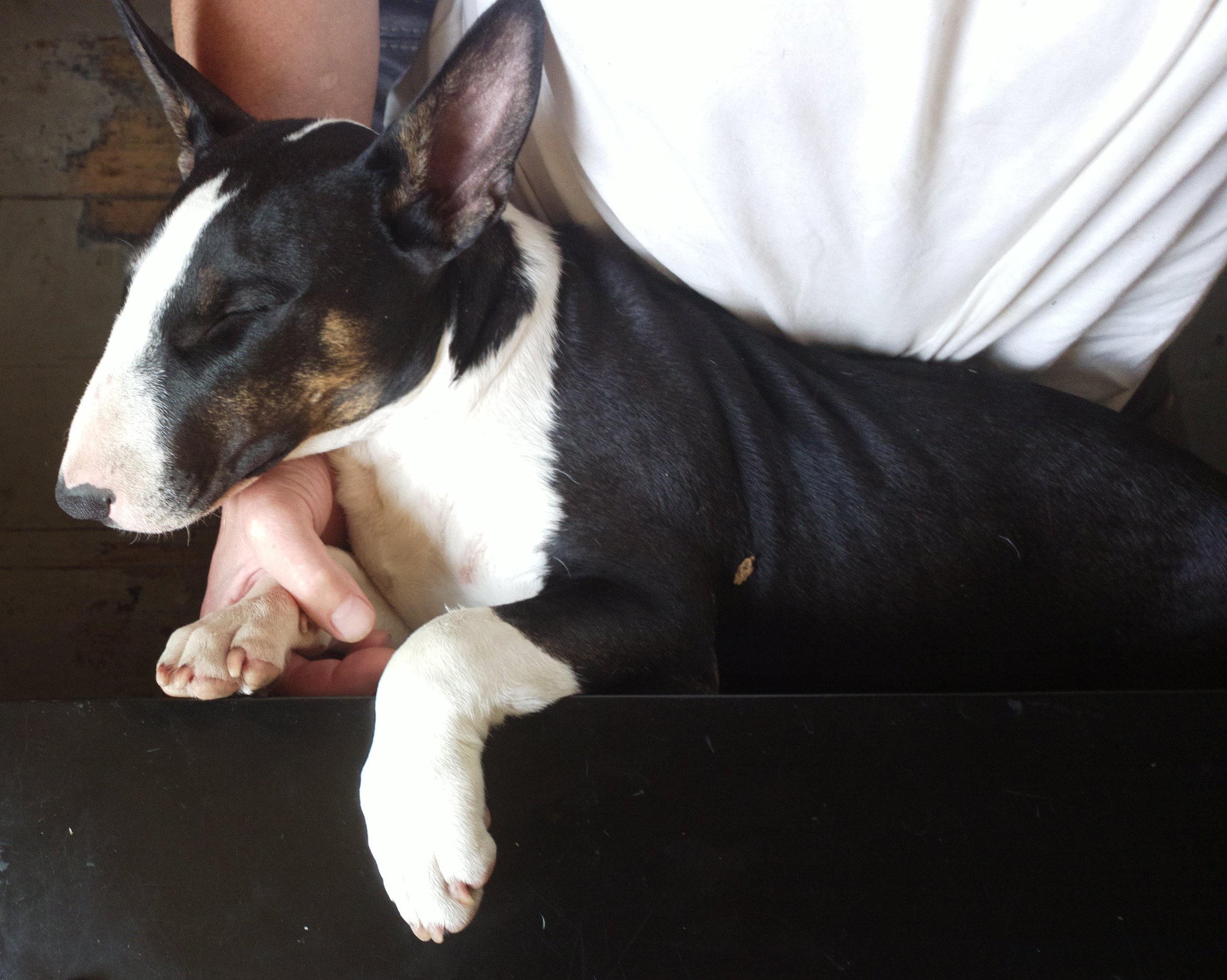 Our last photo of Bull Terrier Boritesia Poborete Varkhond (Babba, named after a Turkish Maffia Boss by his adoption parents...), 2 hours before he left us to go and live with Ruud and Marianne.