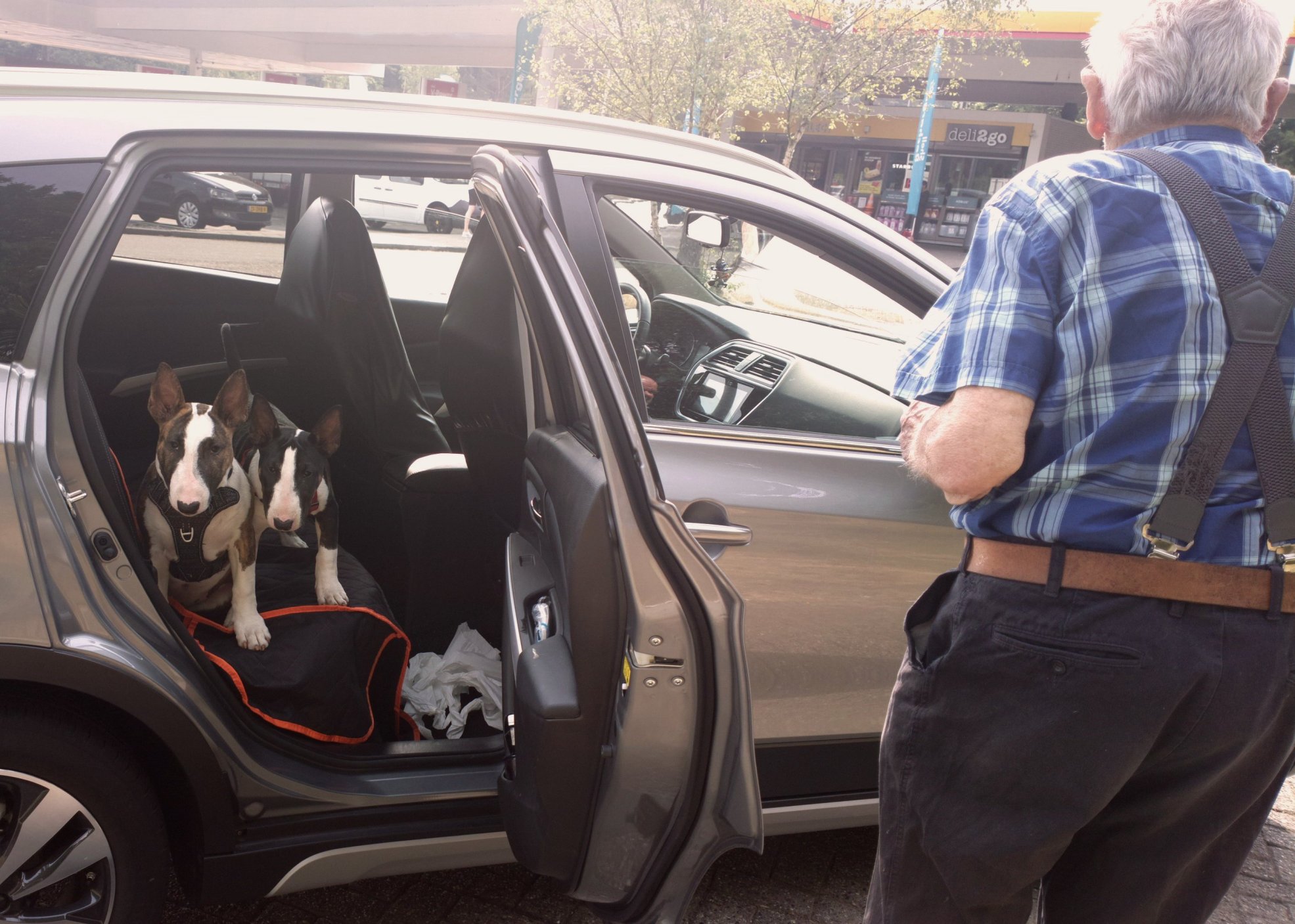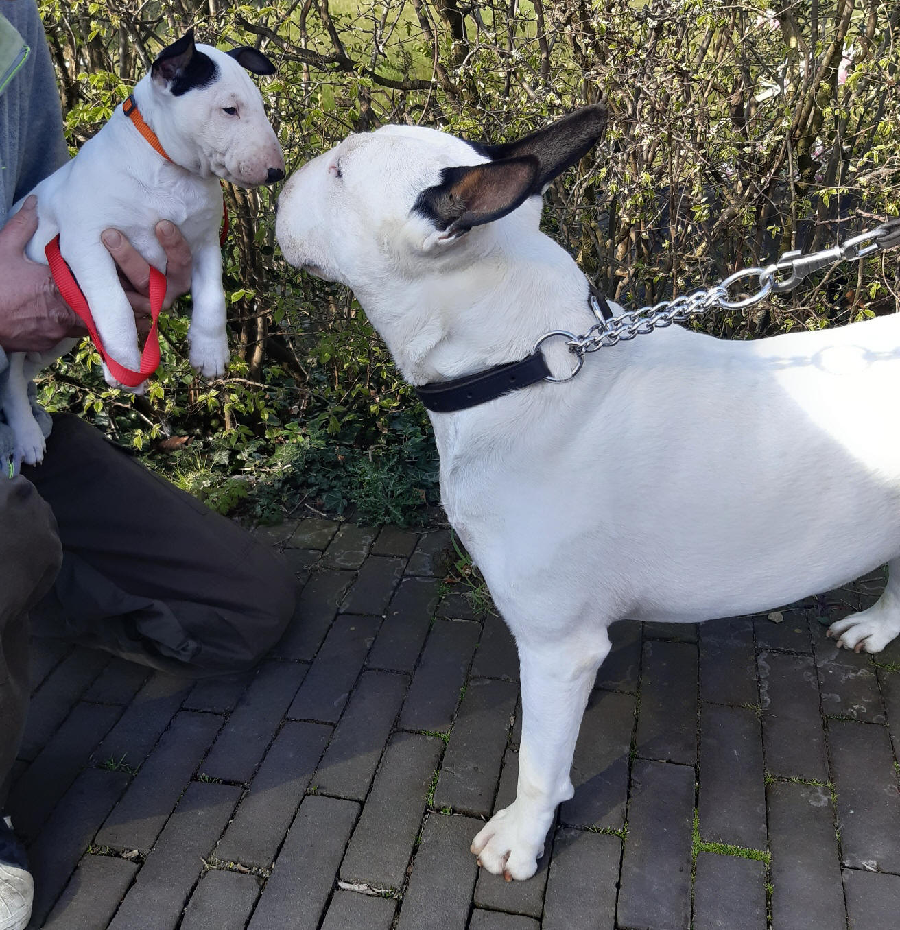 23rd of June 2024: Albert drove Peter, Gabber and Meisje to the BTCB JHD (Bull Terrier Club Belgie Jonge Honden Dag) / youth show. Albert has taken up a showtraining course and walked a fantastic first event with Gabber.