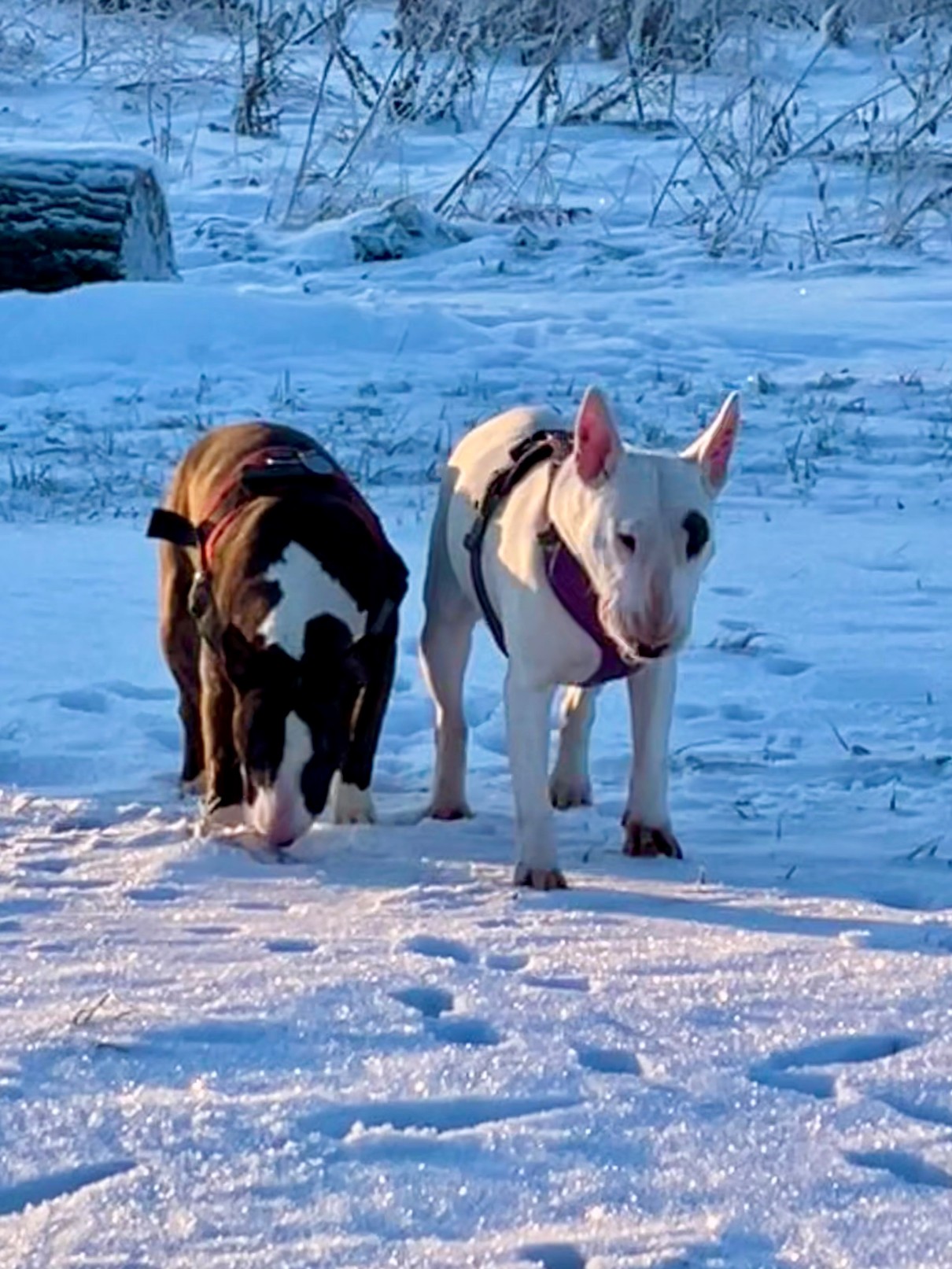 Here some fantastic photo's by Kim of Macey playing in the snow in Denmark with Norma's half sister Snowie: