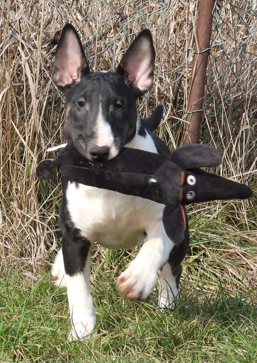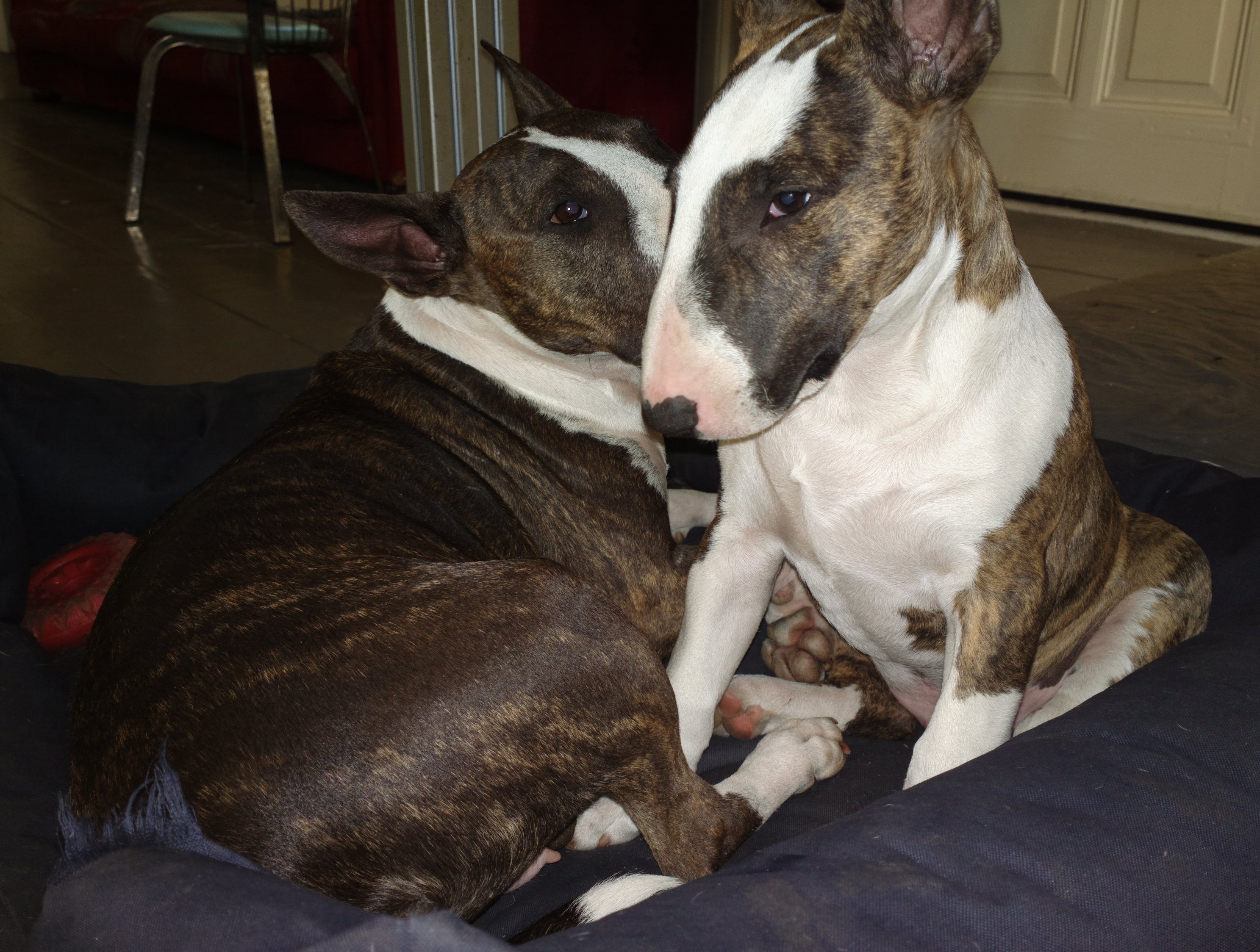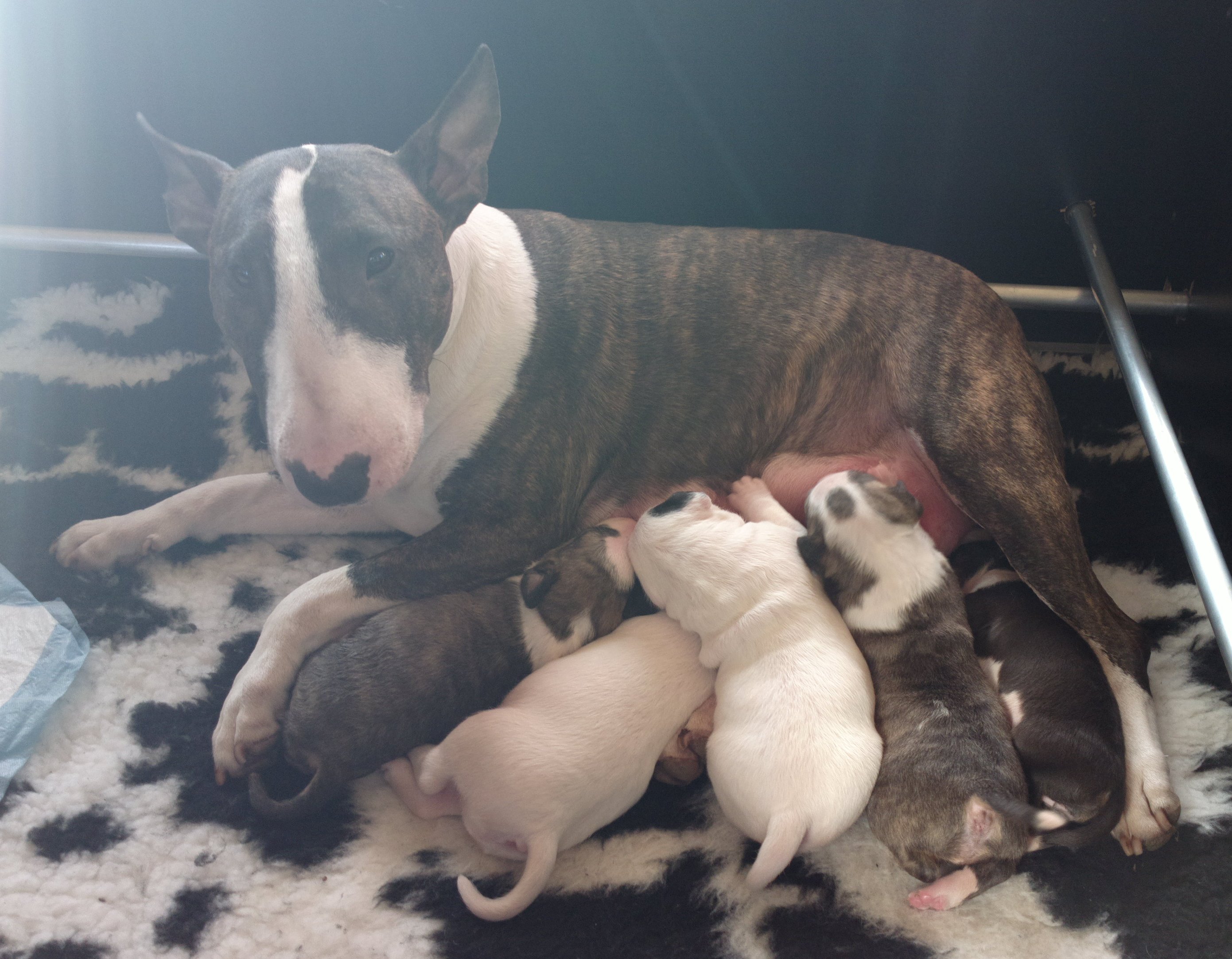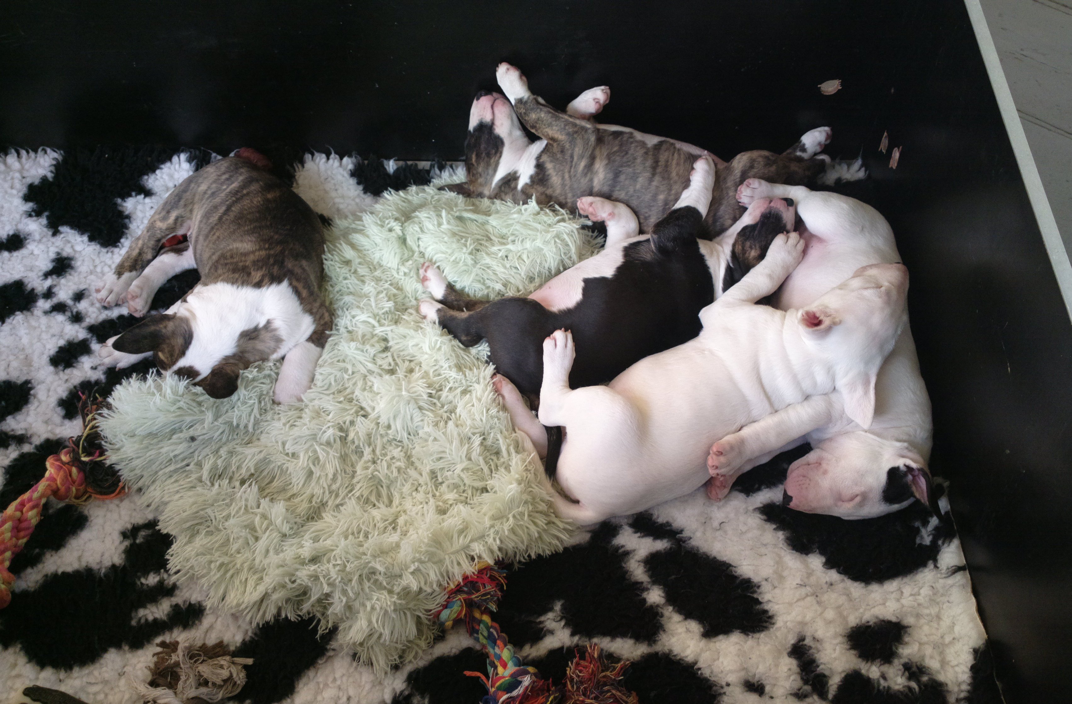free in our living room and out of the whelping box + extension. Bull Terrier adventures!