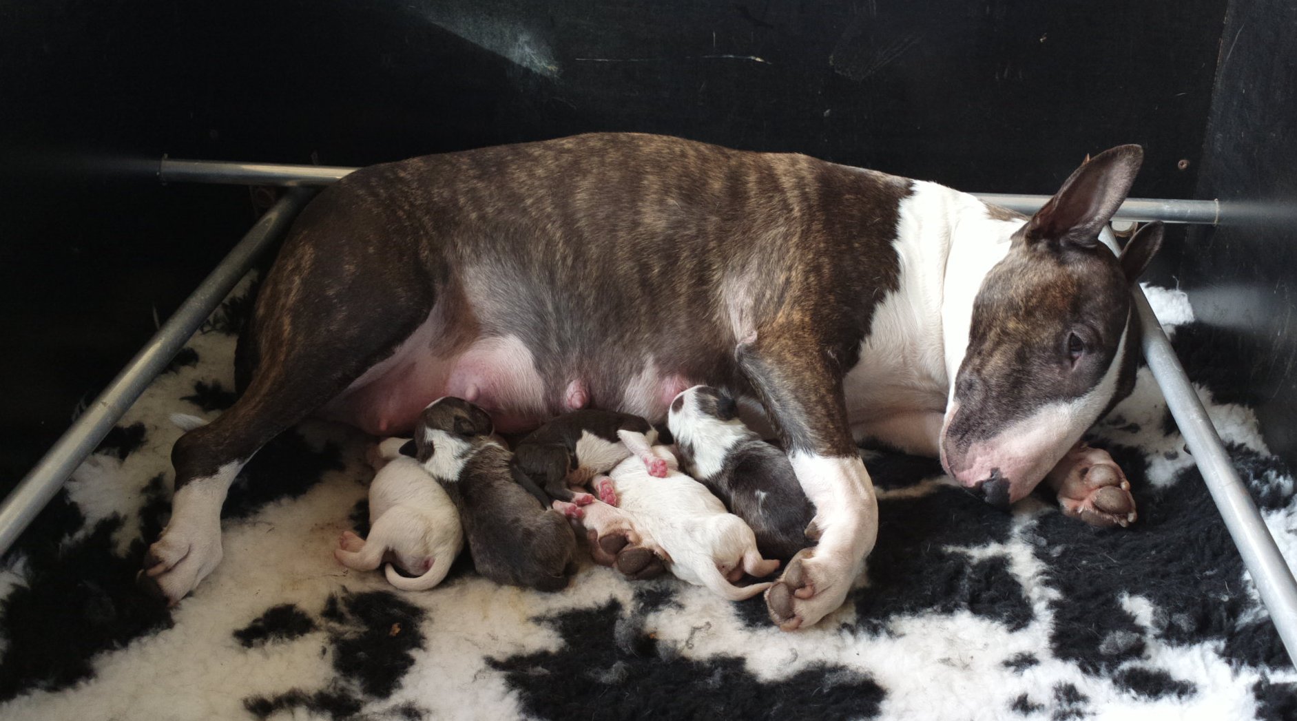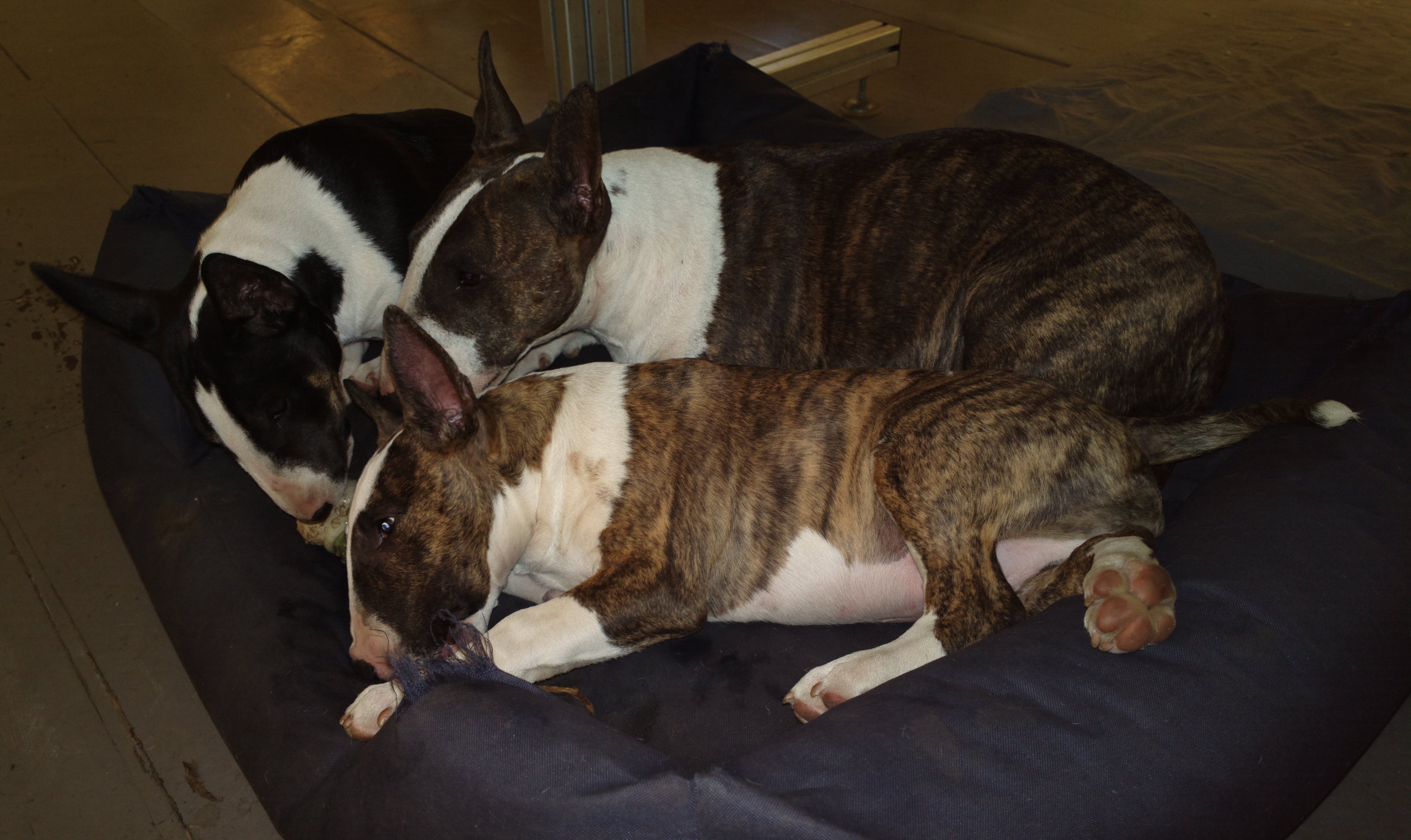 24th of October 2023: after a sleepless night, no fault to the three Bull Terriers (maybe they even enjoyed the adventure?), Meisje, Gabber, Kay and Macey today celebrate their 8 months Birthday... Happy Birthday!