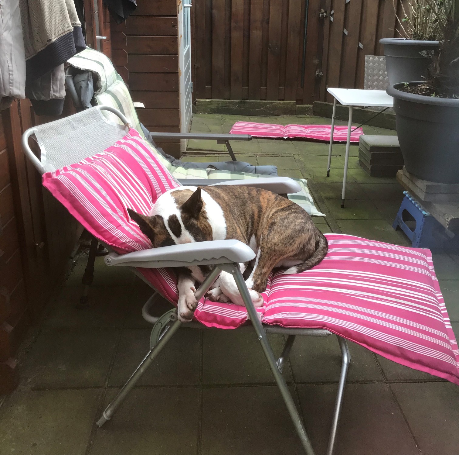 6th of April 2024: Meisje's brother Gabber chilling in his garden: it's a beautiful day ;-)