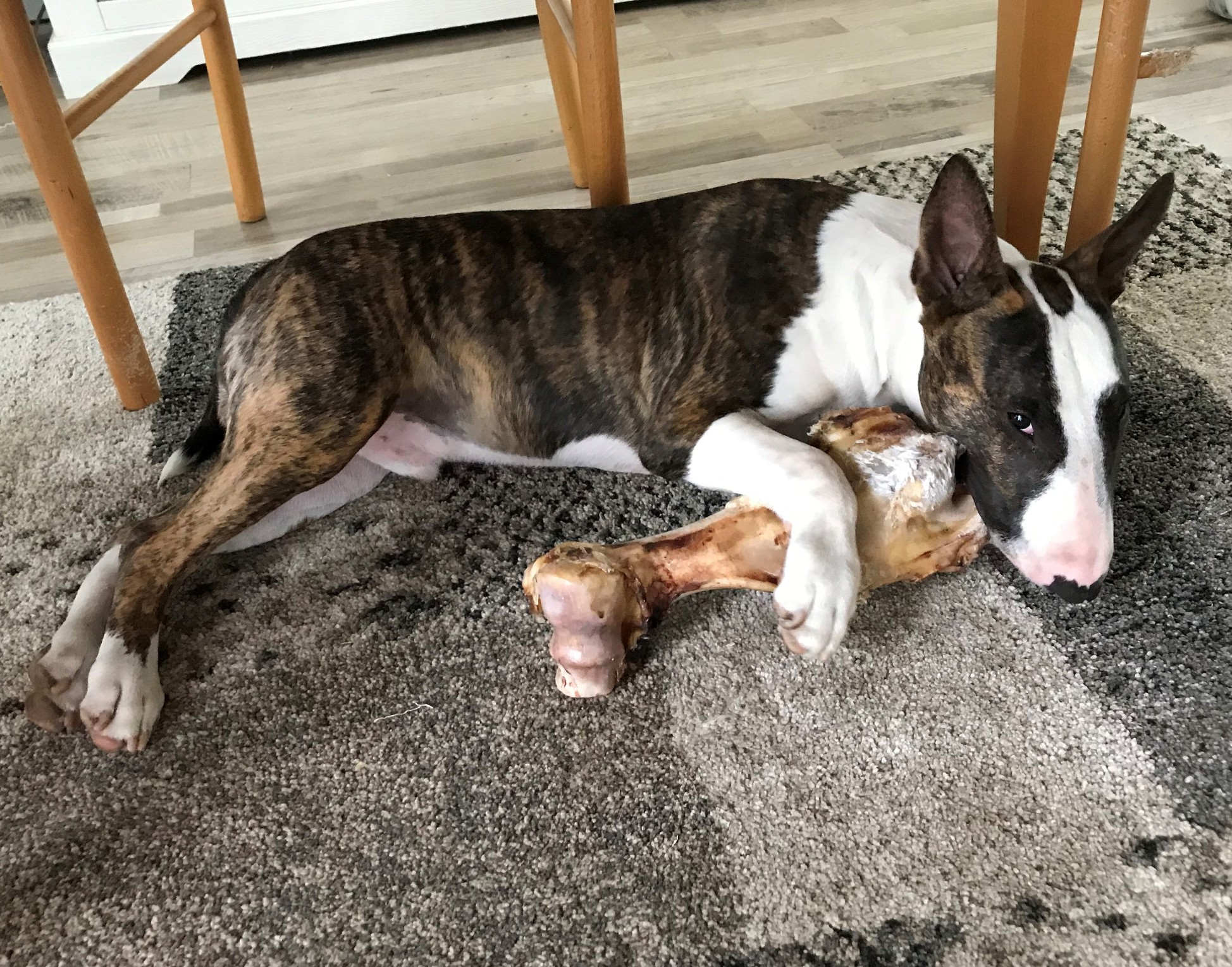 9th of September 2025: Meisjes brother Gabber enjoying a huge dinosaur bone as Albert calls them ;-)