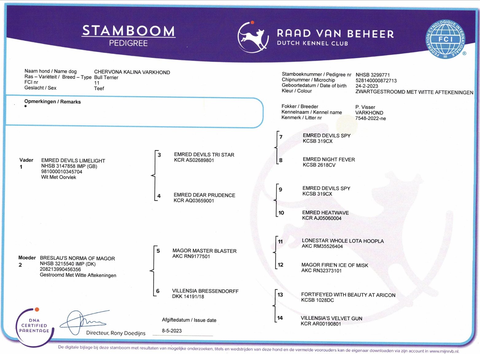 Meisje was born on the 24th of Febuary 2023 in our home. Her pedigree name is: