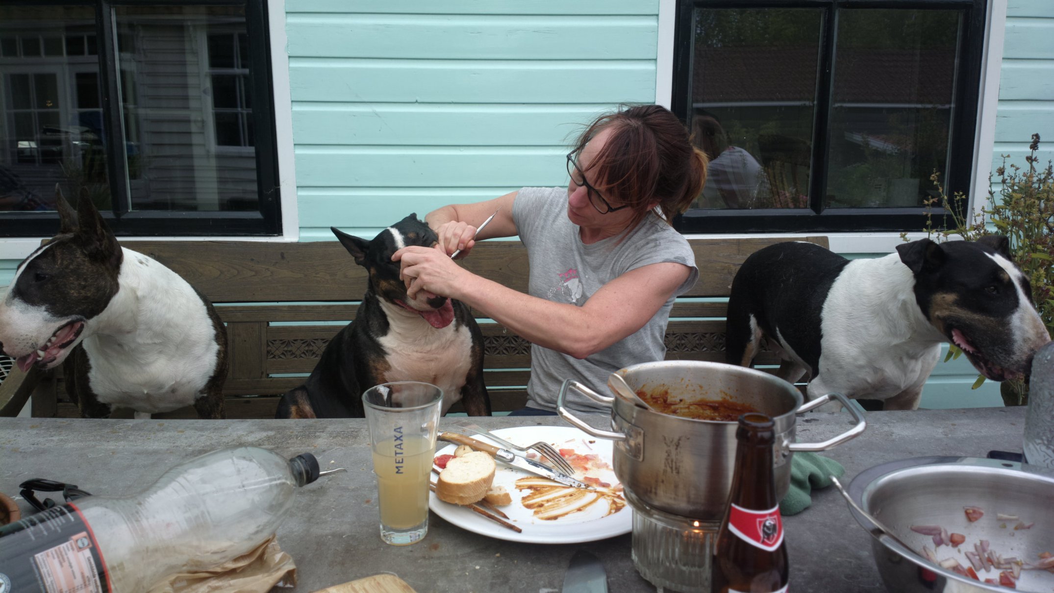25 augustus 2018: gezellig, Floortje en Sky op bezoek. Sue is verliefd, haha.