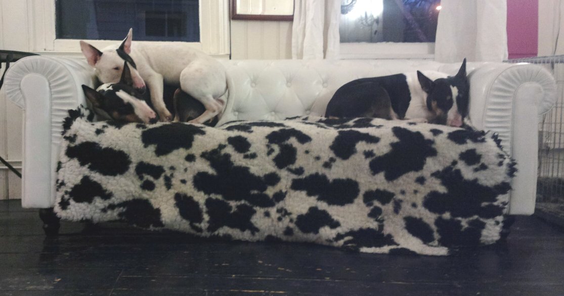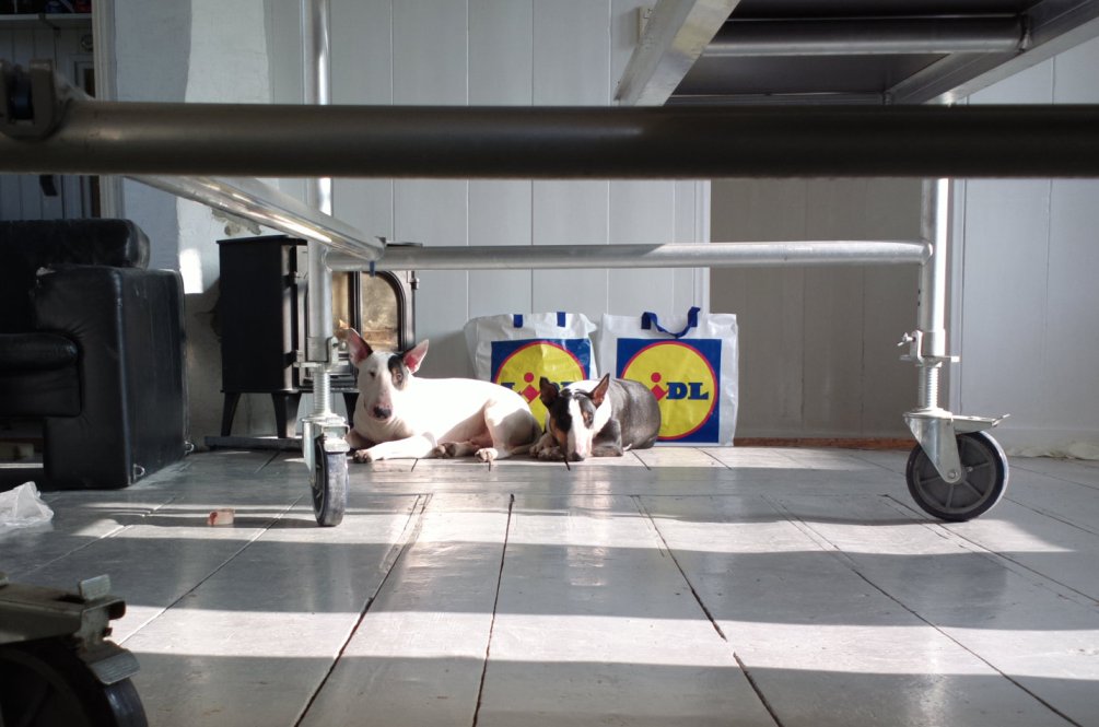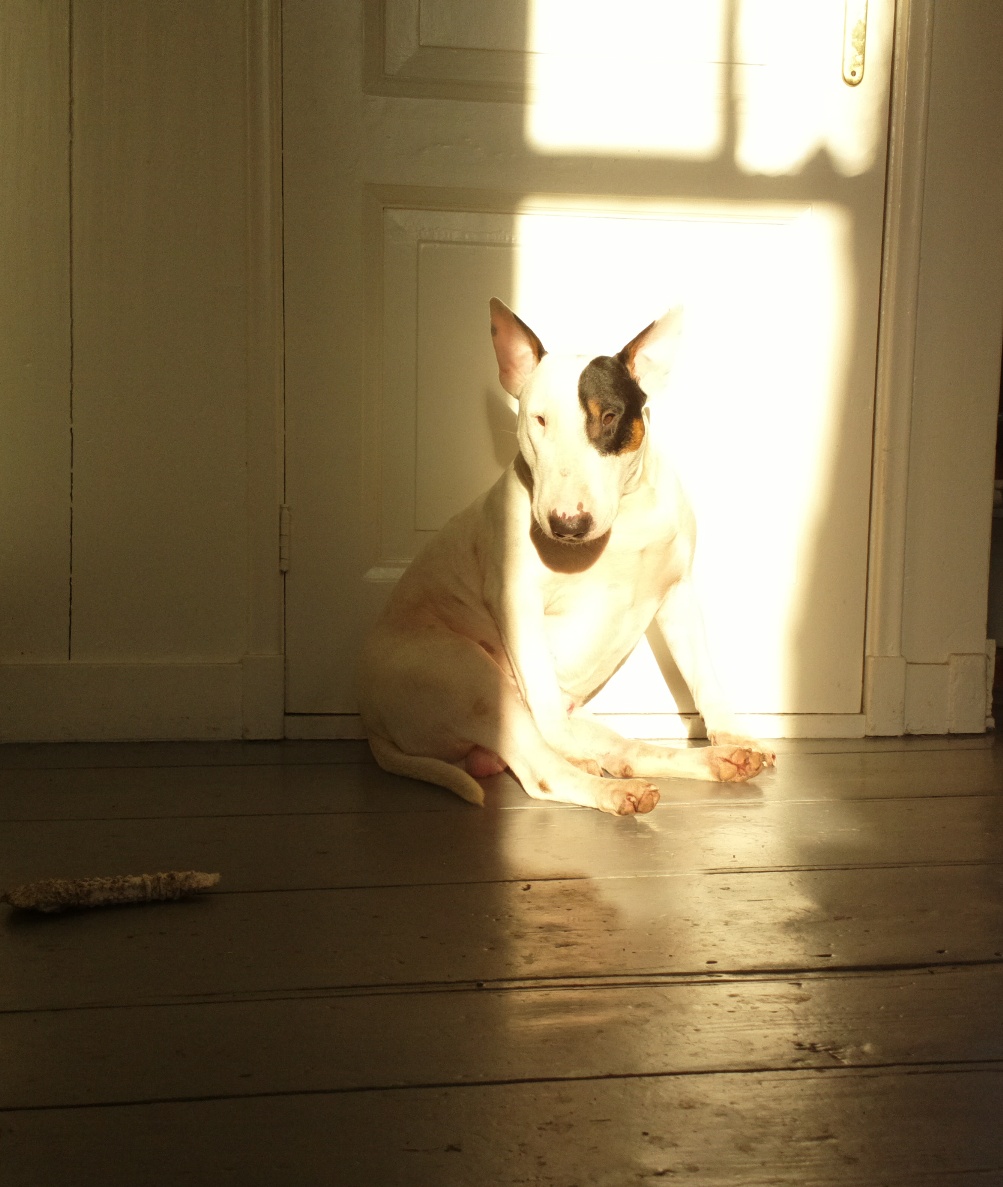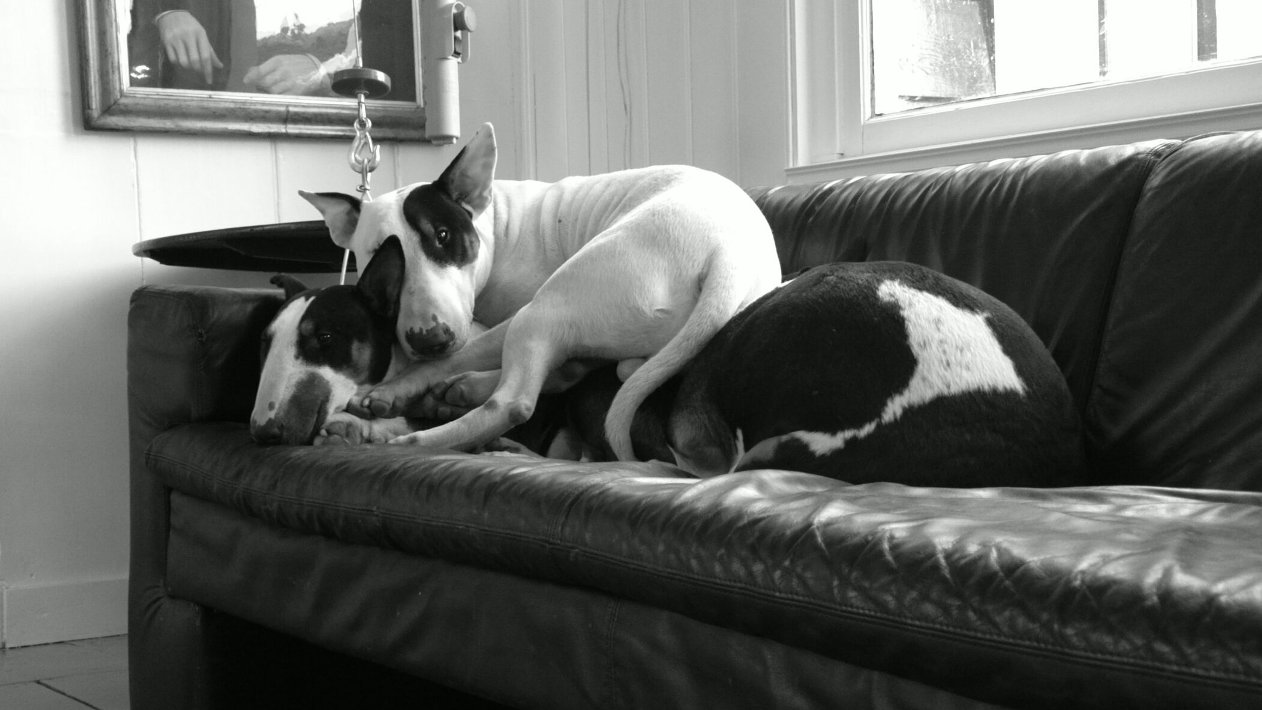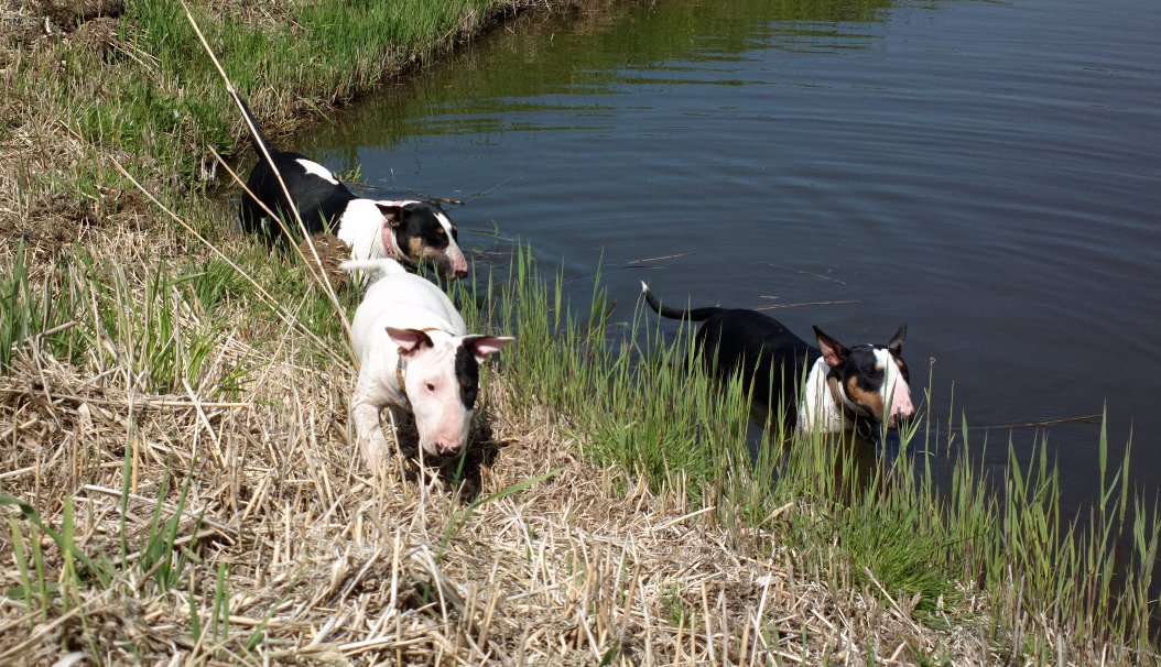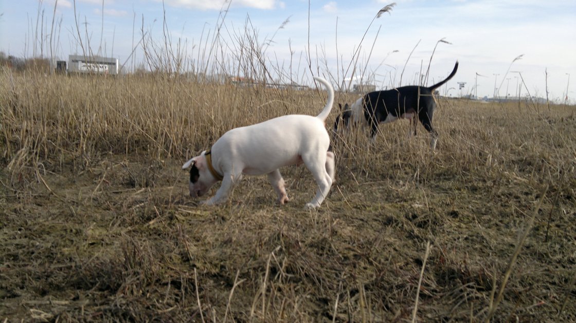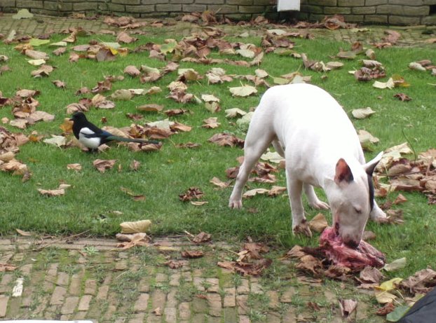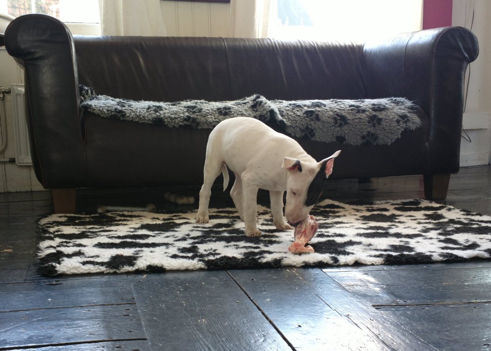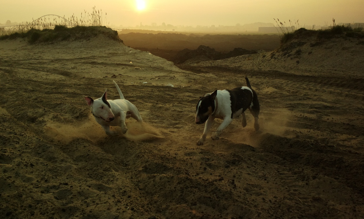 Very excited Bull Terriers: we're about to play the chase the doggy biscuits game J
