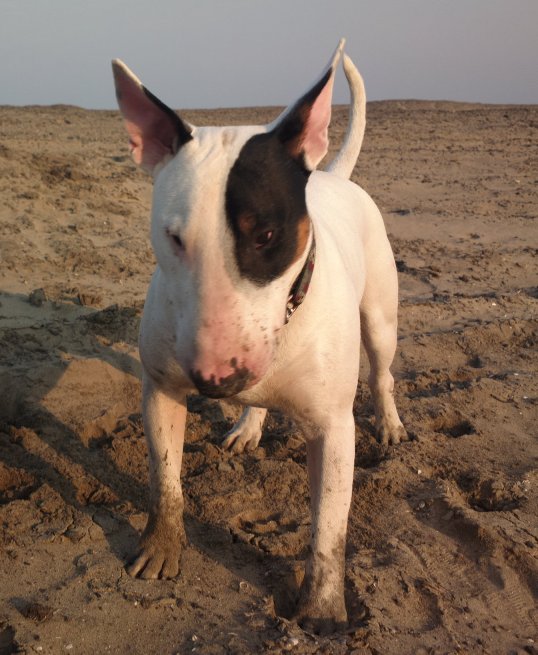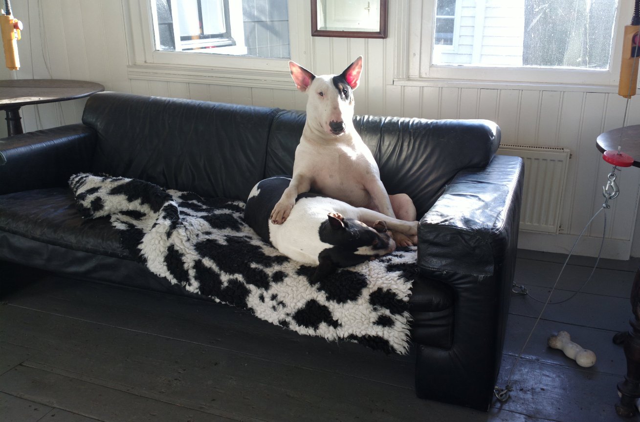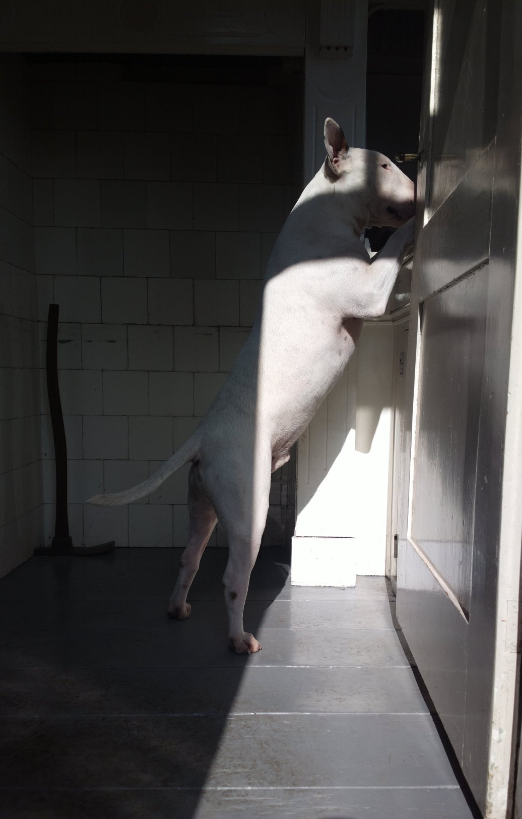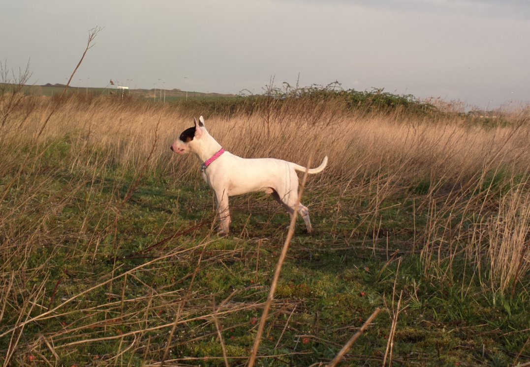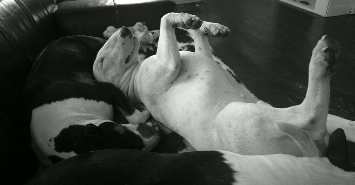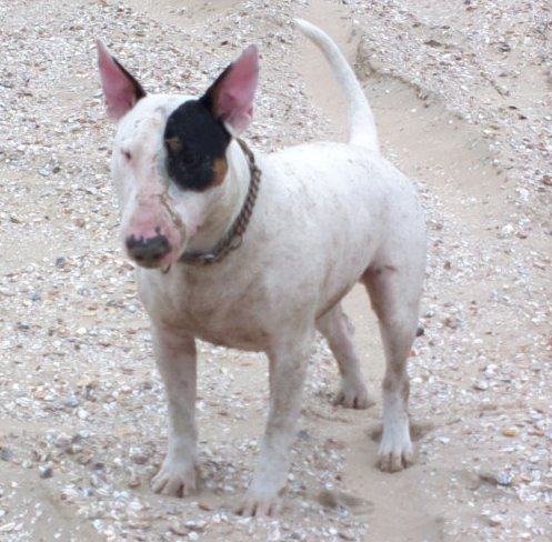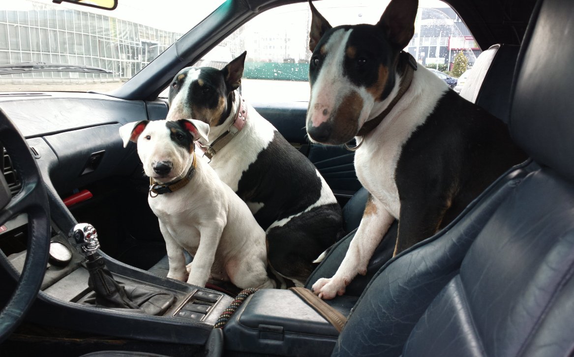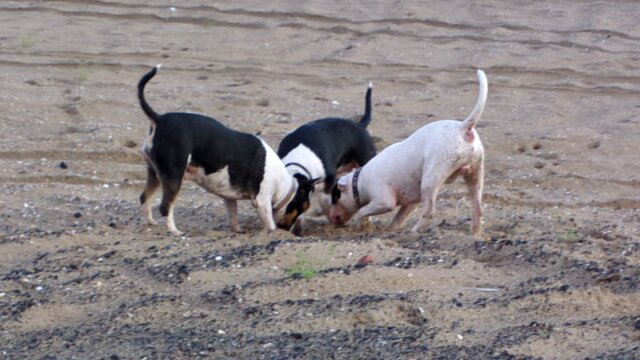 Very excited Bull Terriers: we're about to play the chase the doggy biscuits game J