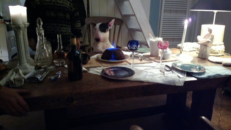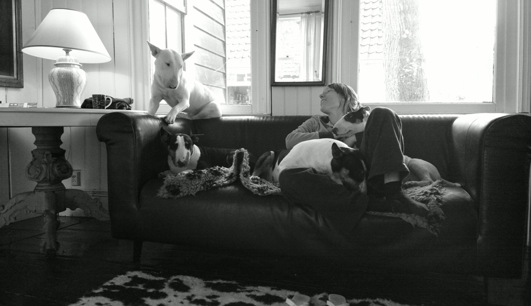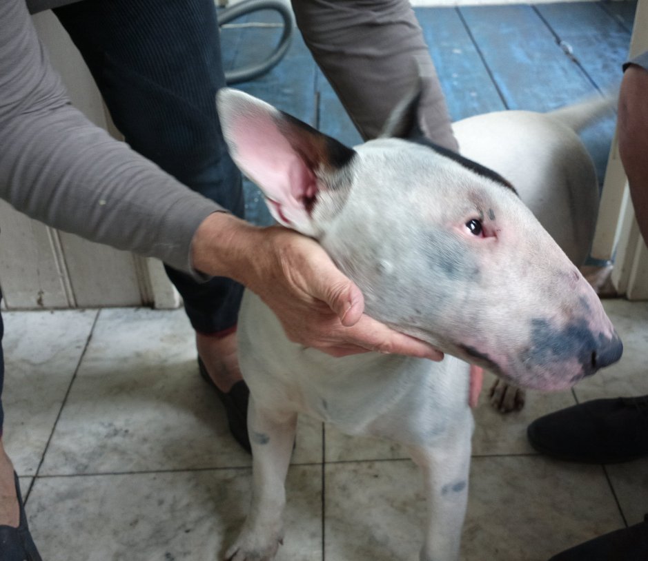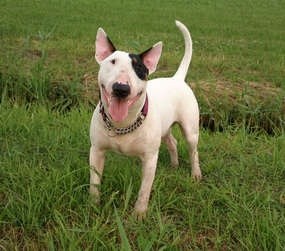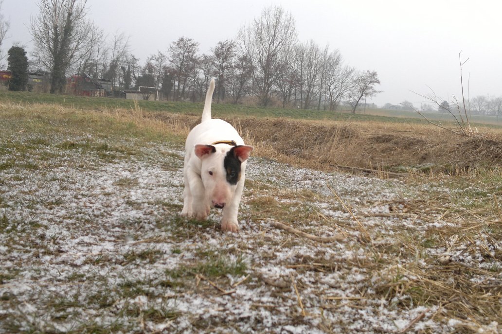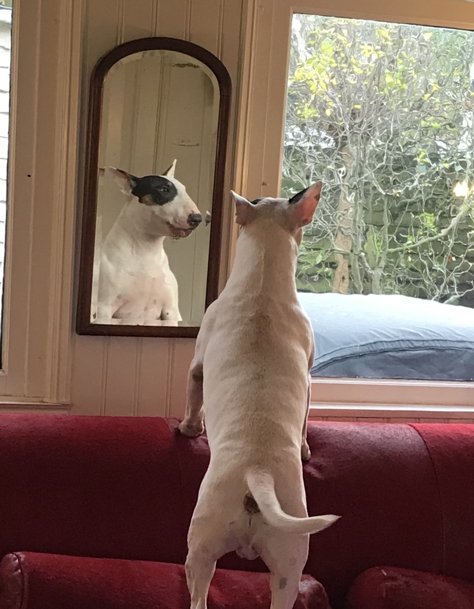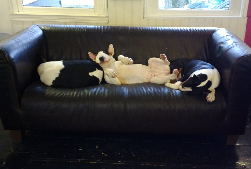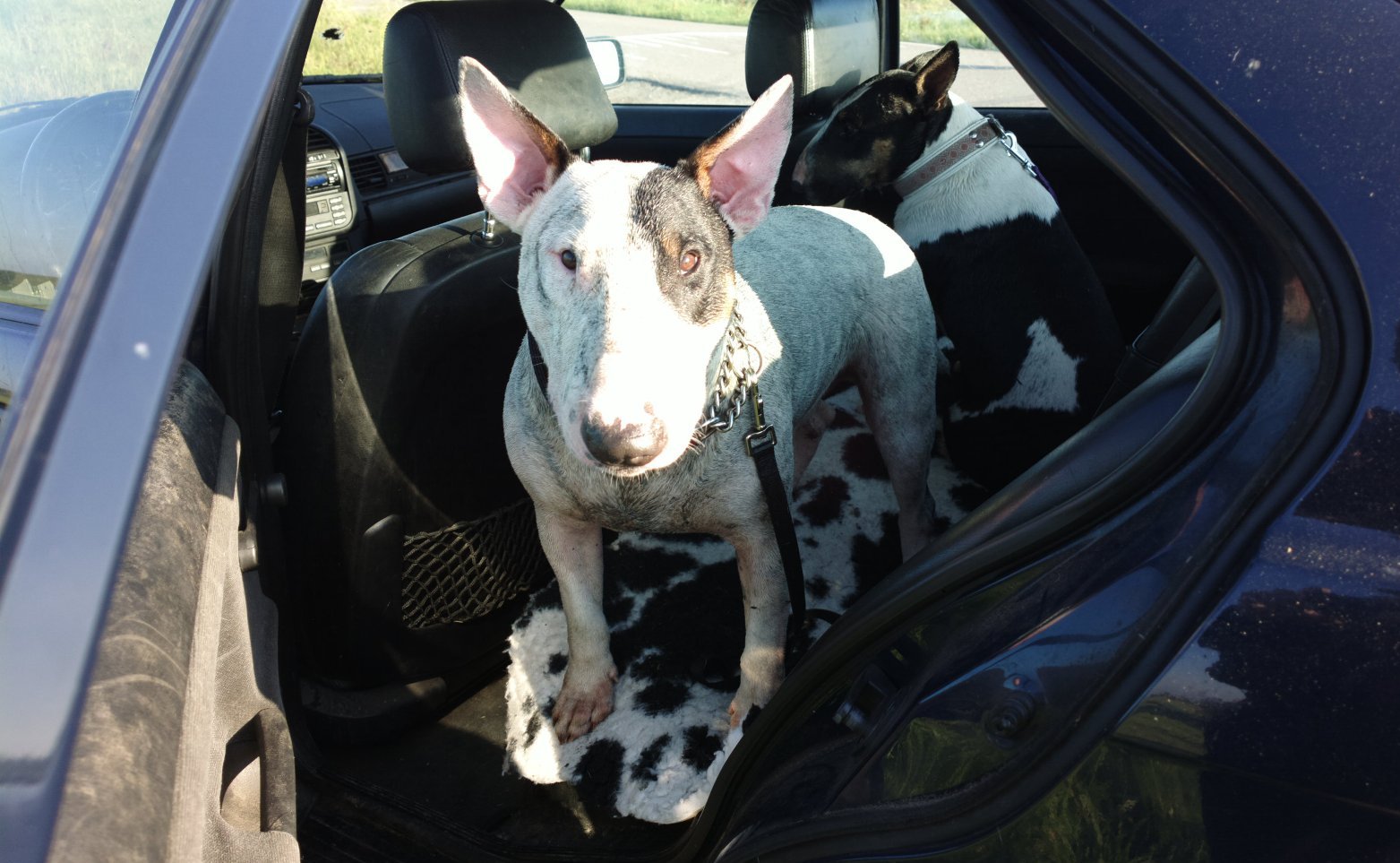 Very excited Bull Terriers: we're about to play the chase the doggy biscuits game J