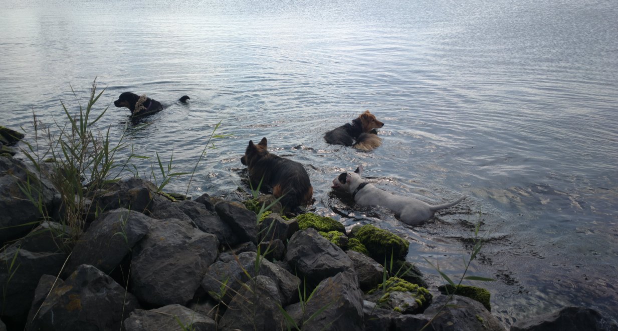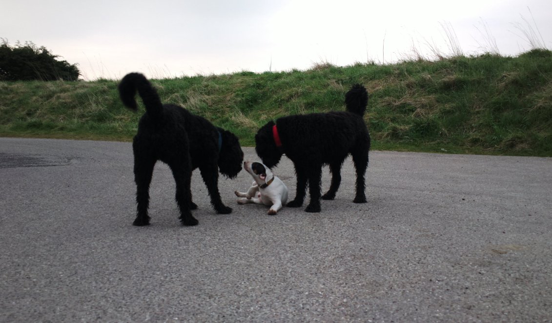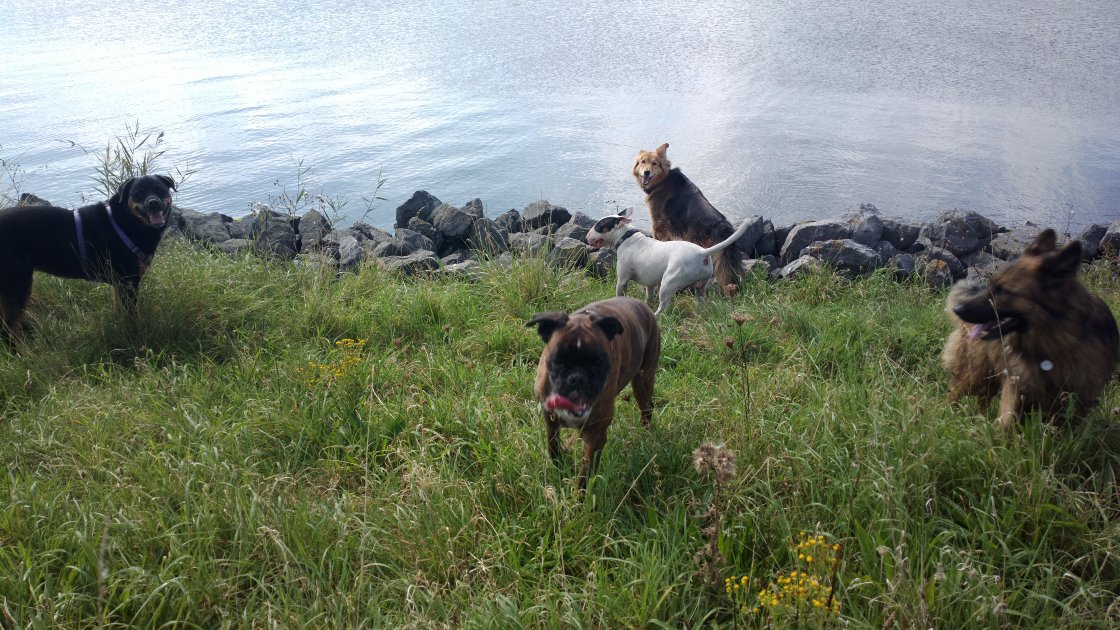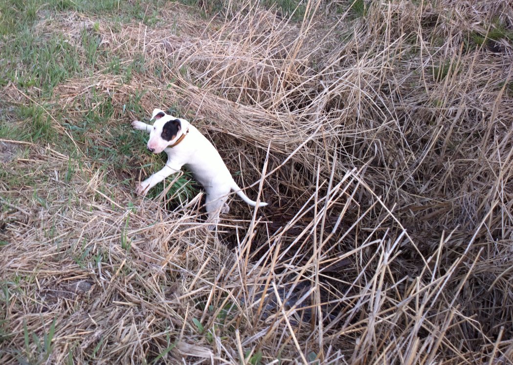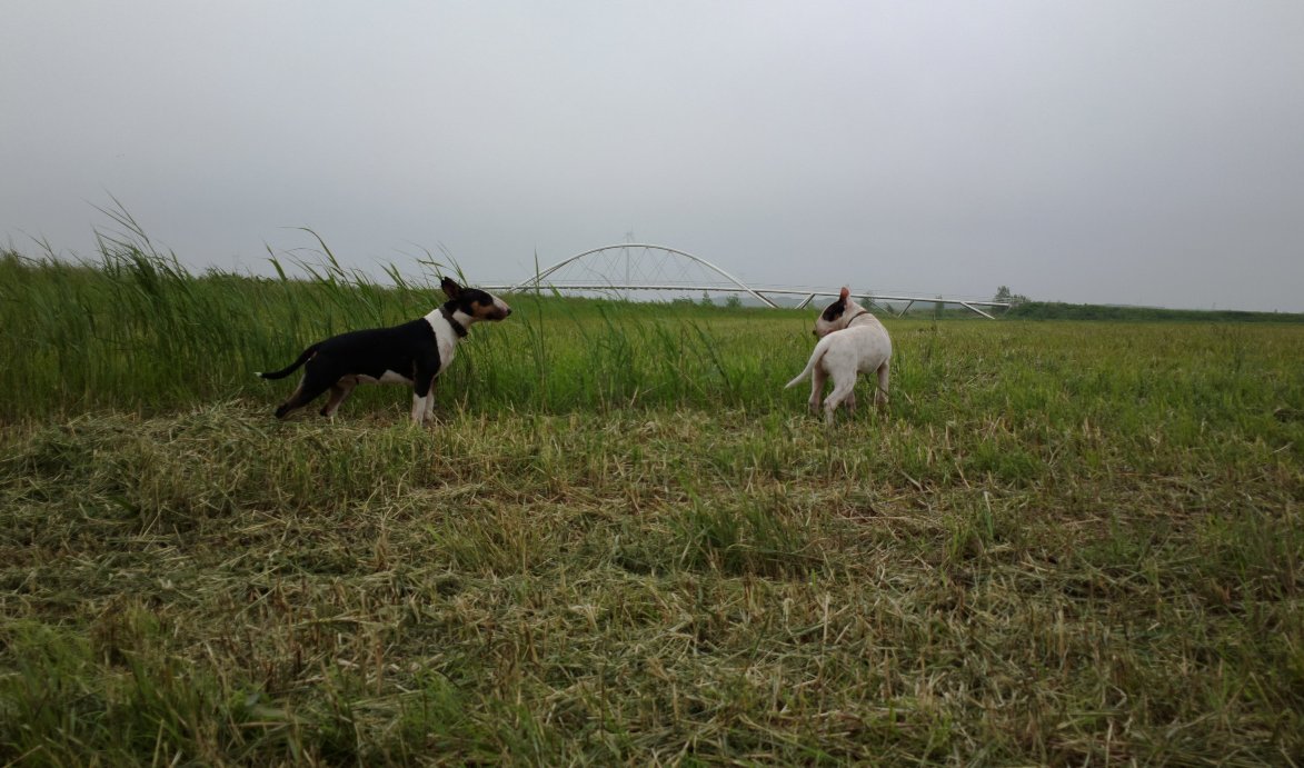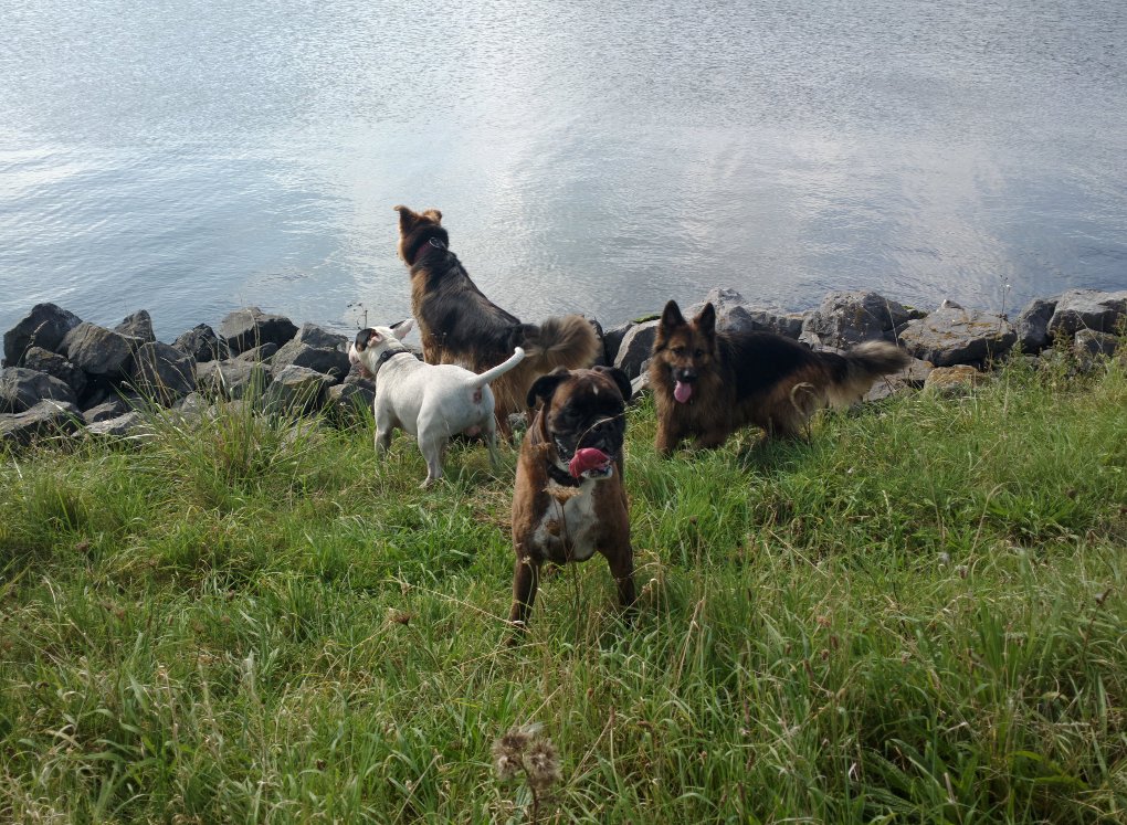 11 oktober 2015: mooie ochtend! De drie varkhondjes jagen op Nils en zijn vriendjes, rennen keihard terug voor een koekje en Sue doet weer even 'submarine' in de sloot. Alles goed met het roedel.