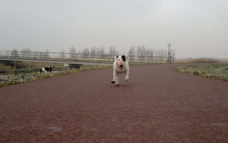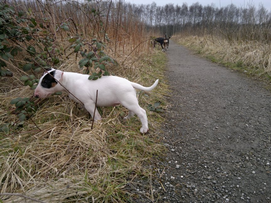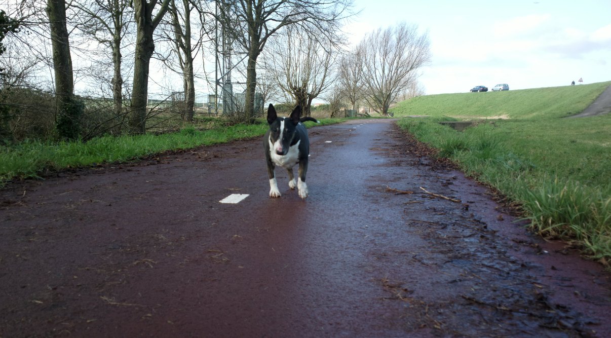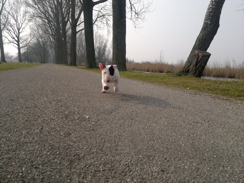 2 maart 2013: Sue (zes weken oud) liep vandaag voor het eerst mee met onze ochtendwandeling in de polder, supergaaf!