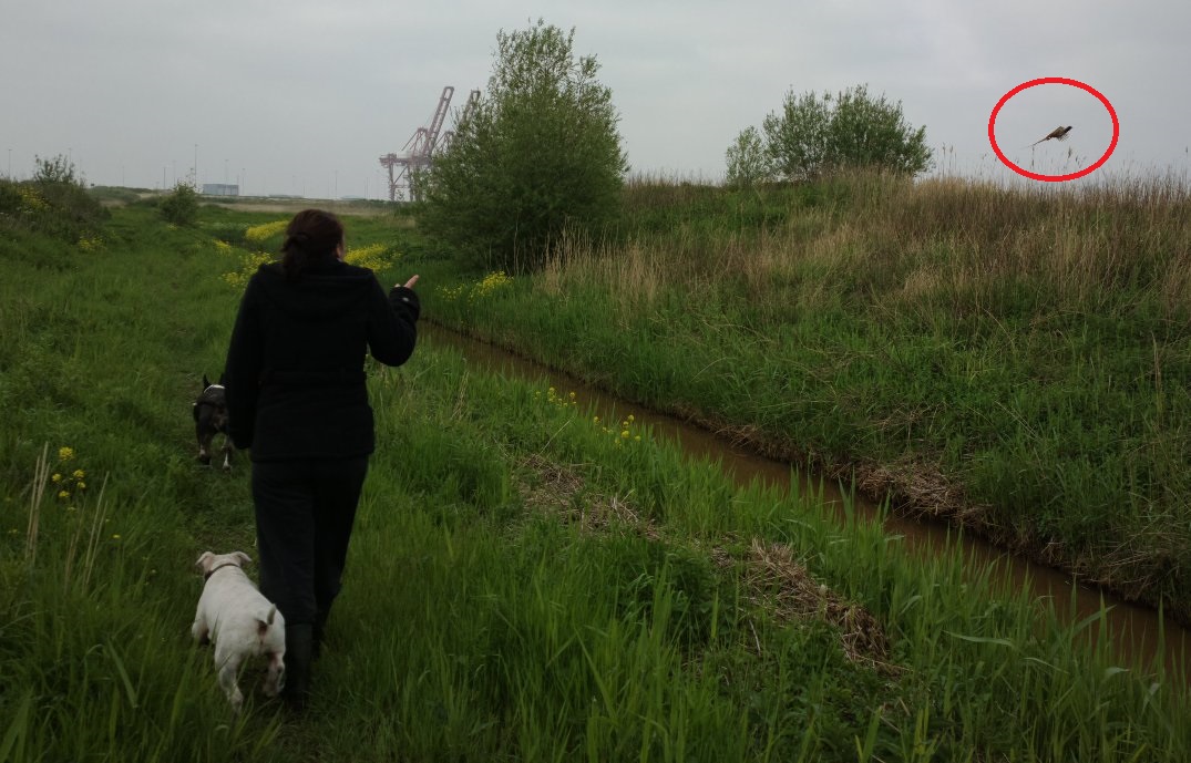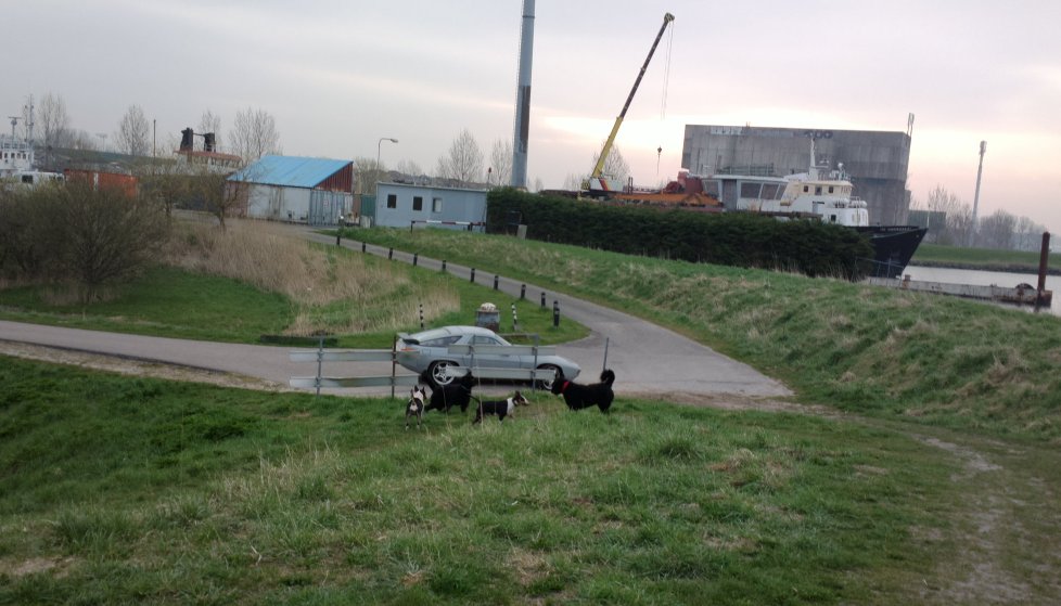 3 april 2015: vier dagen vrij, hoera! Ochtendwandeling, Sue langs het Noordzeekanaal.