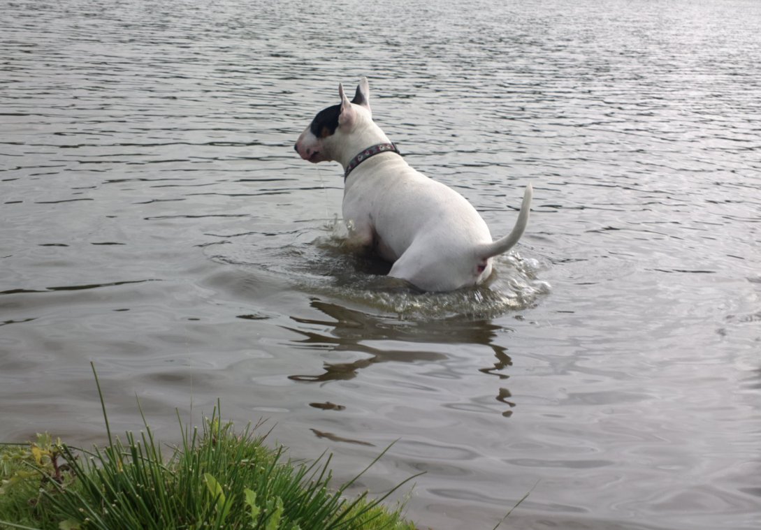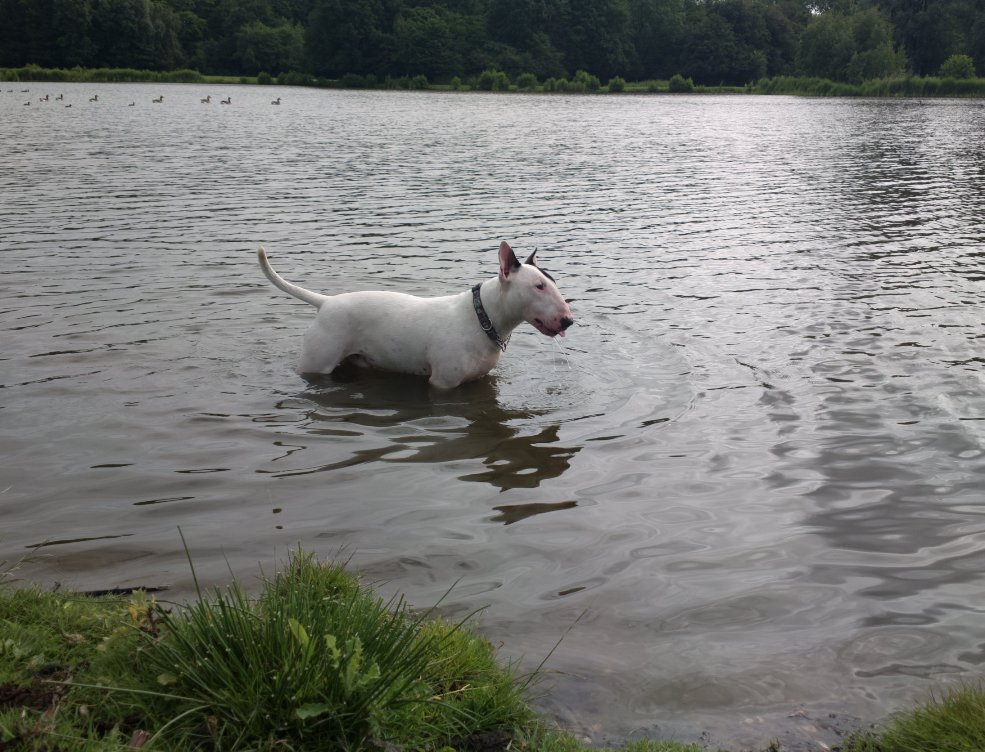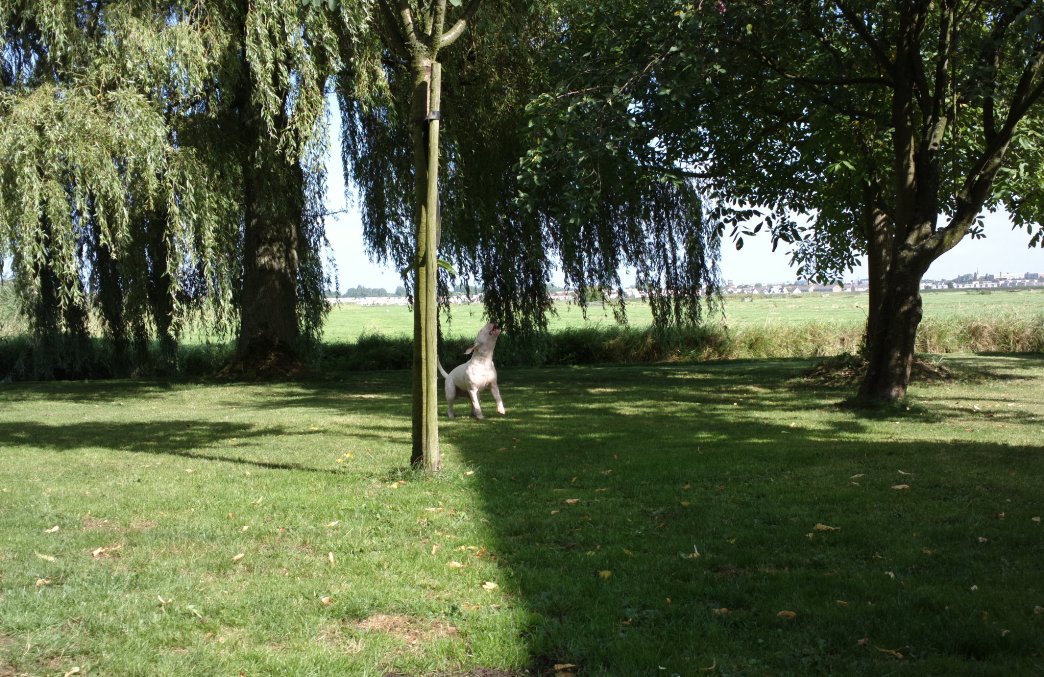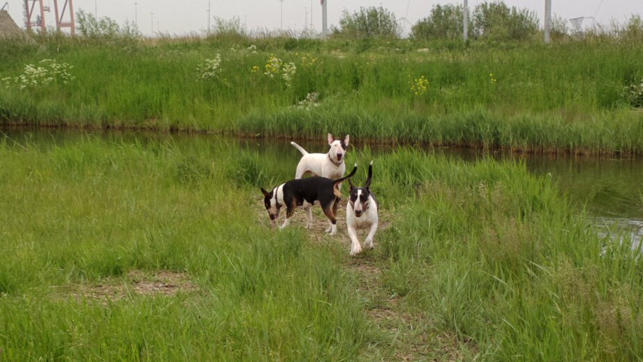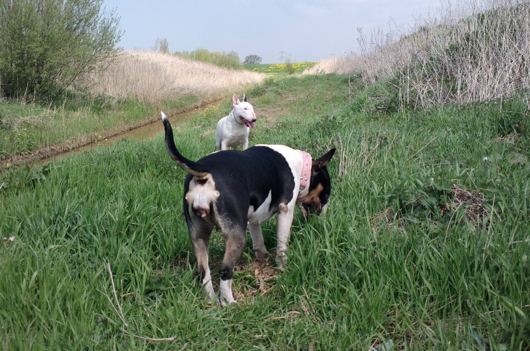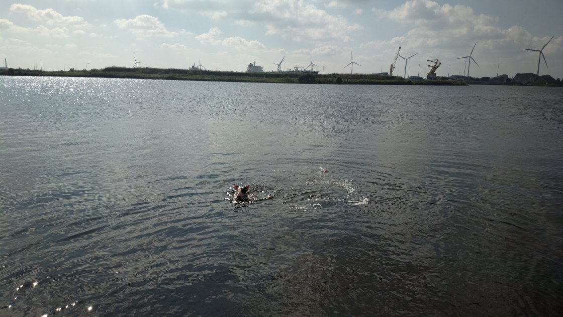 11 april 2015: met Sue naar het meertje, gelukkig is het er nog. De gemeente Zaanstad lijkt een tweede dijkwal aan te willen leggen op het braakliggende terrein waar wij wandelen. Ik ben benieuwd... Maar goed, Sue ging uit zijn dak van vreugde (Tess ook een nat pak ;-), mooi begin van het weekend!