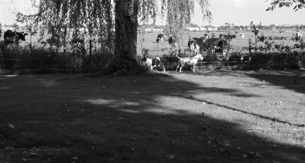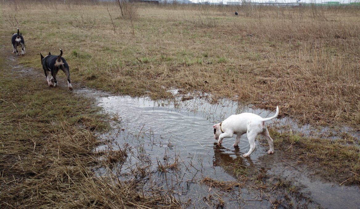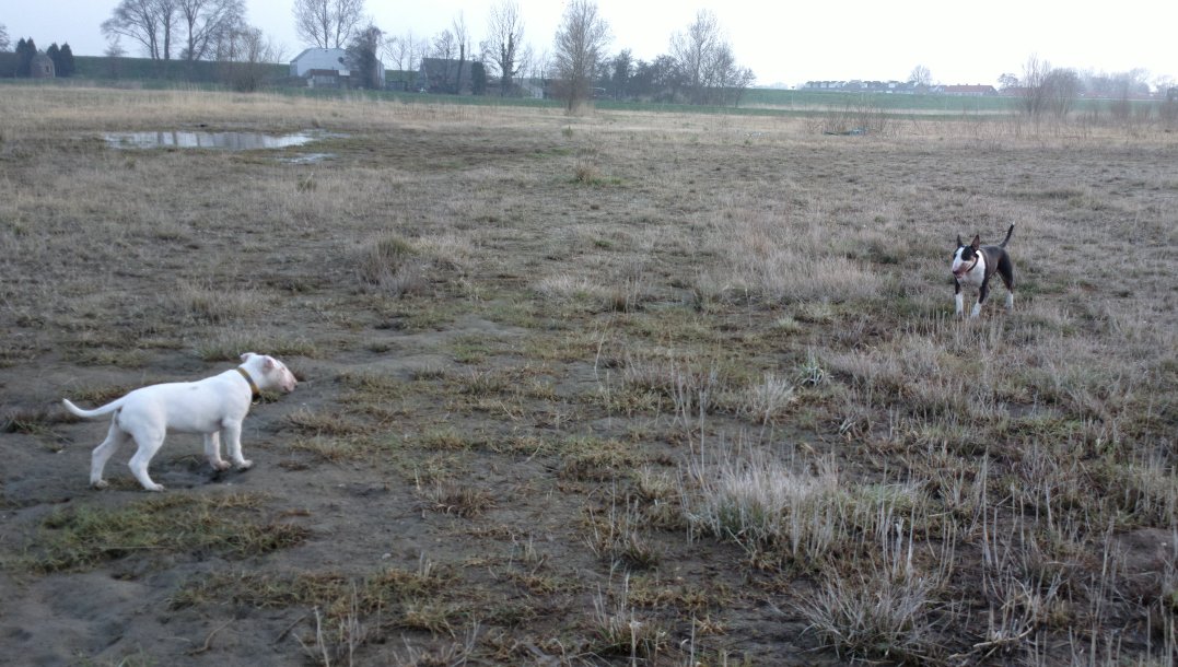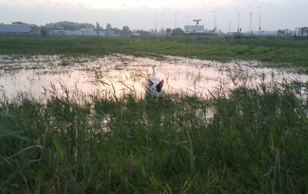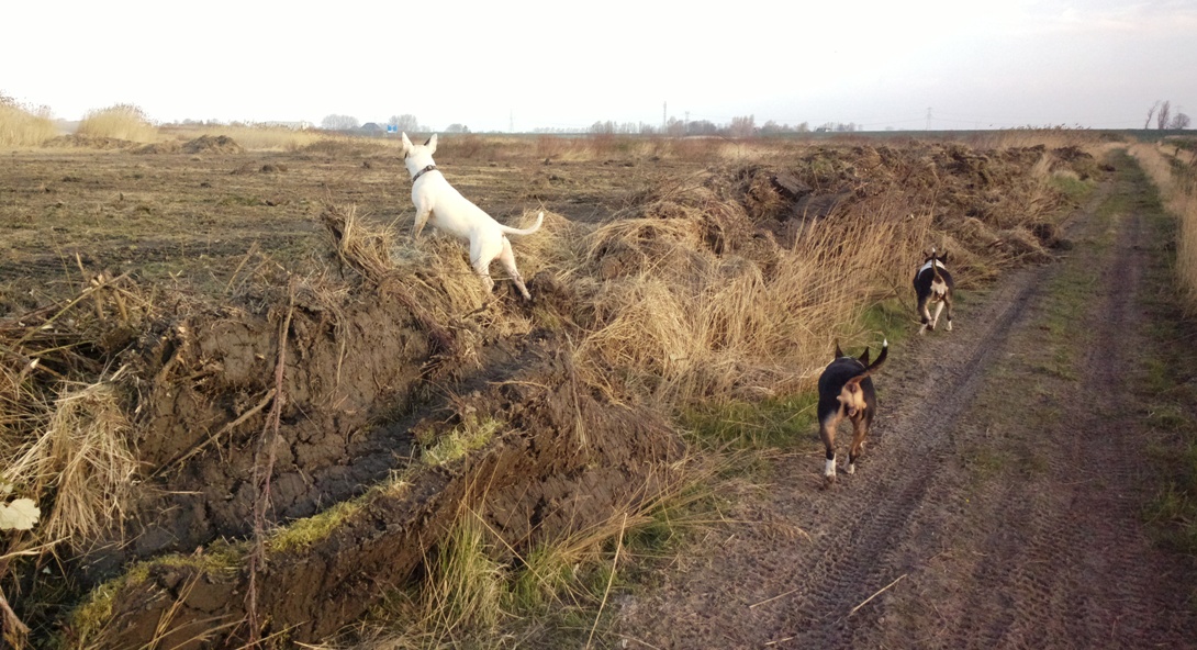 Het veld waar we altijd wandelde is onbereikbaar geworden: omringd door een nieuwe breed gegraven sloot, jammer...