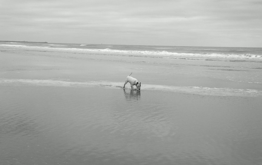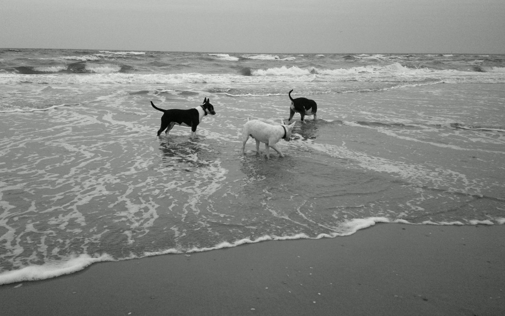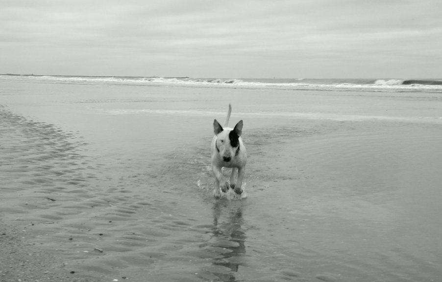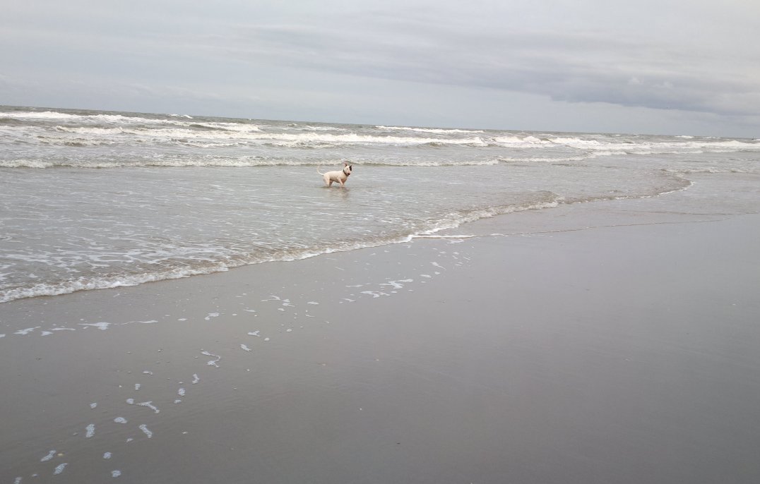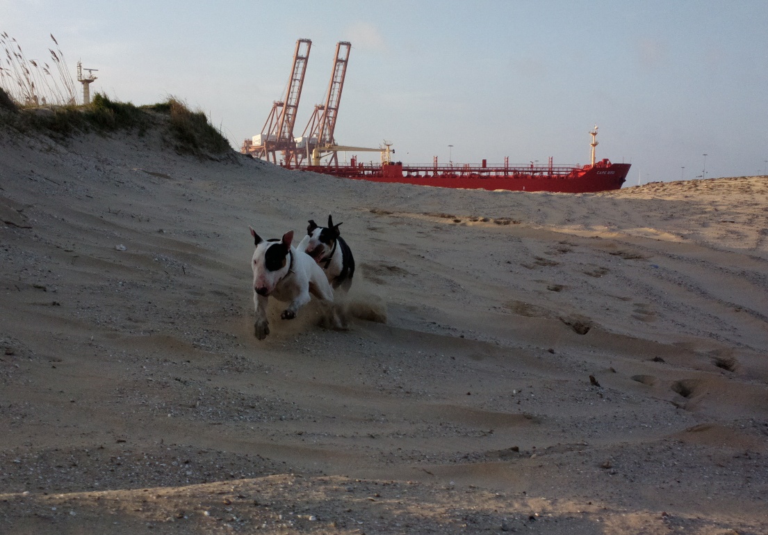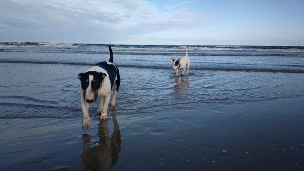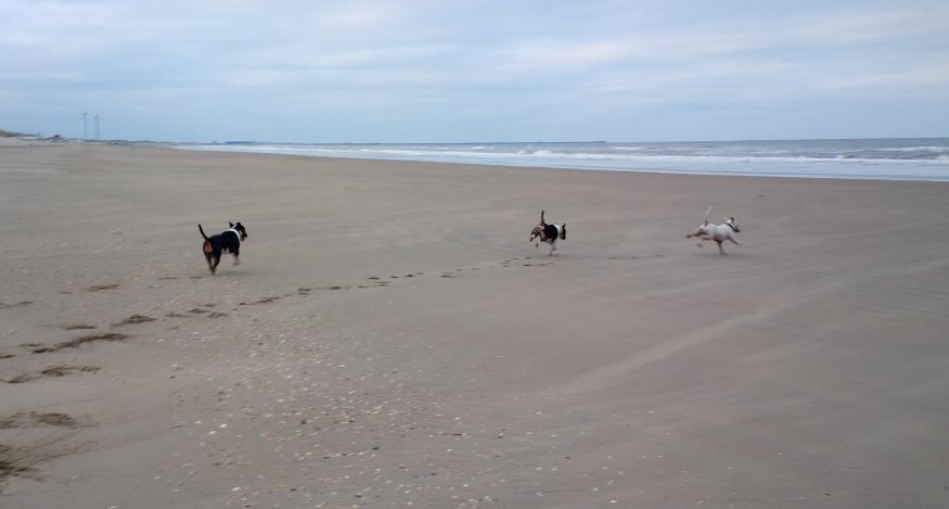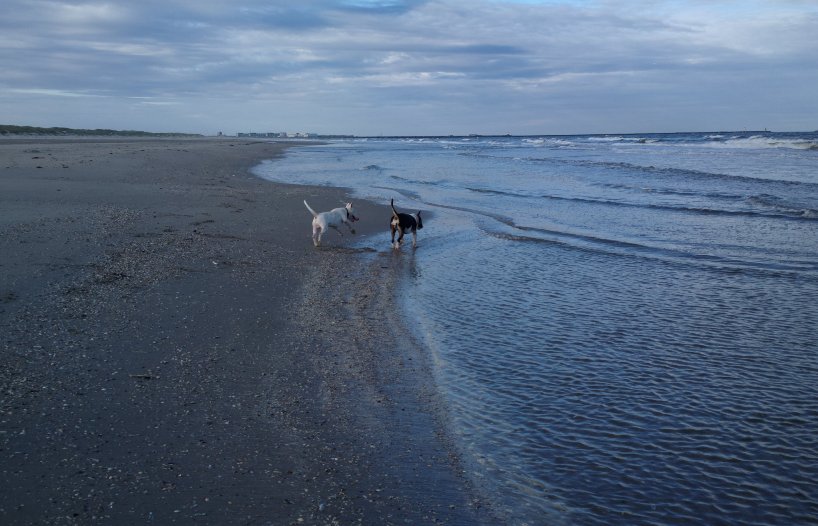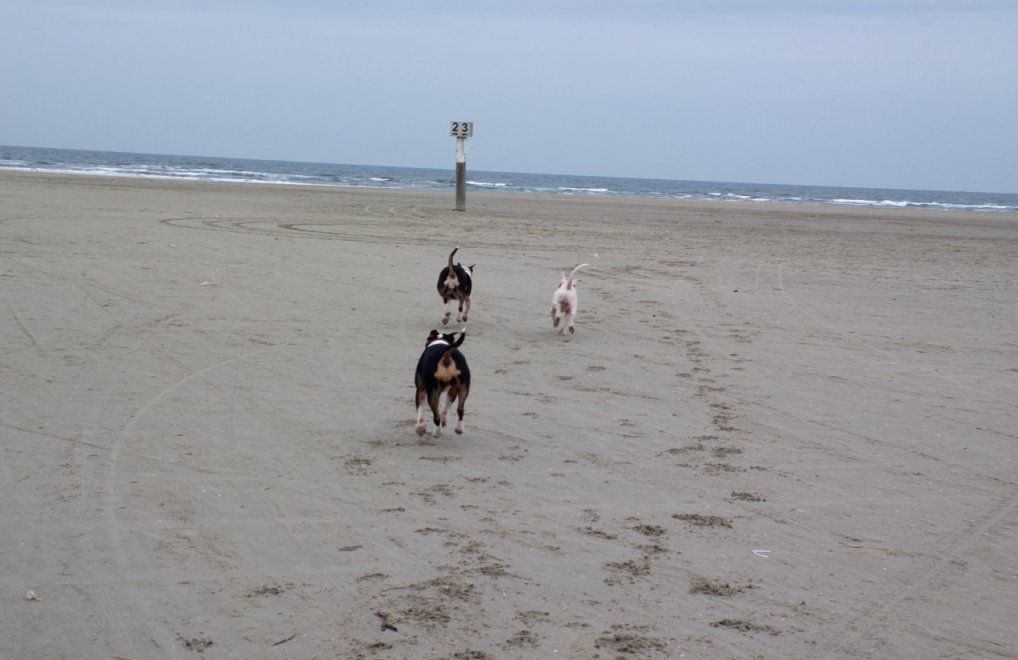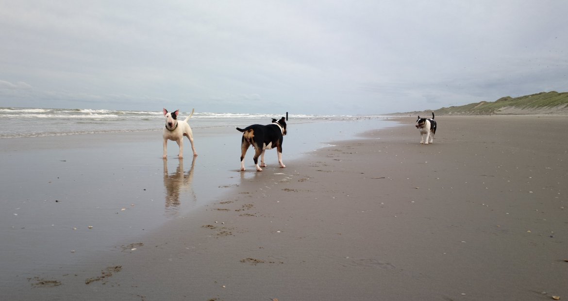 29 oktober 2017: voor het eerst in tijden weer met de hondjes naar het strand in Wijk aan Zee. Stevig briesje, lekker uitwaaien: de BT's waren door het dolle.