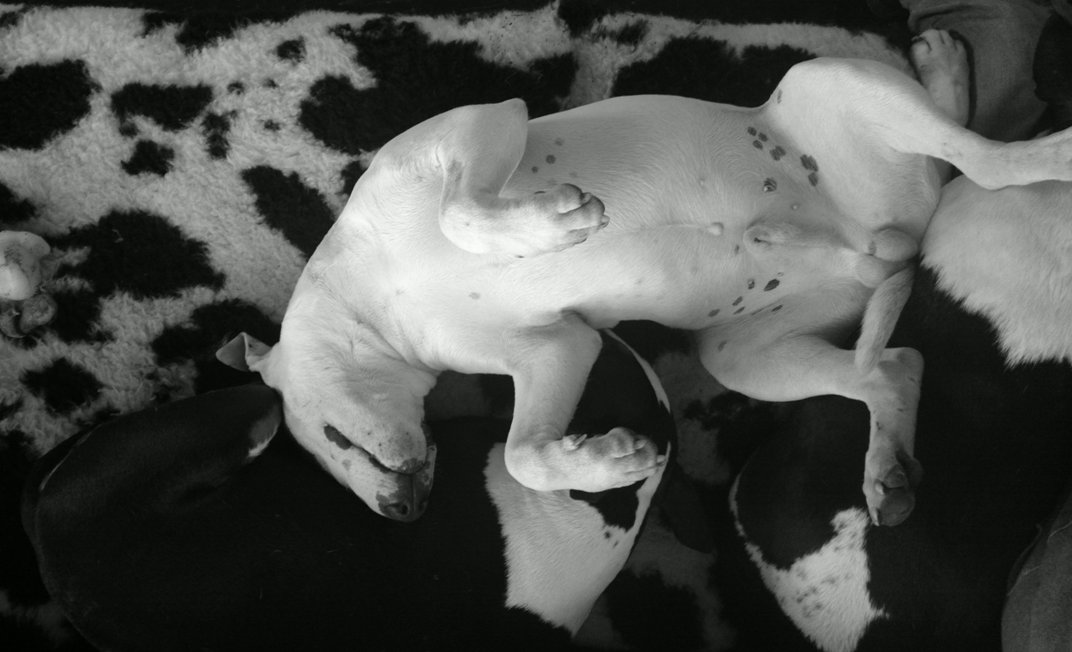 Vannacht sliep Sue tegen mijn gezicht aan gekroeld op ons hoofdkussen bijna de hele nacht vast door: snoesje. Tess lag ver weg tegen Gladys aan geschurkt onder het dekbed, tutje. Maar ja, ik begrijp prima dat Tess af en toe ook aan haar eigen rust moet denken: een pup baren, verzorgen, beschermen en opvoeden is geestelijk en lichamelijk een hele inspanning. En Tess doet het zo goed!
