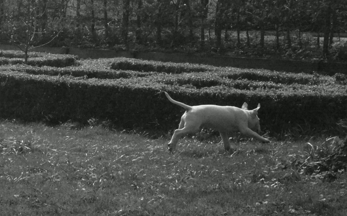12 maart 2016: ochtendwandeling, brrr, koud begin van een schitterende dag. Op het filmpje het zoek de frolic spelletje, de drie BT's vinden het fijn... Voor de rest de hele dag buiten gewerkt, stokrozen geplant, alle paden met de hogedrukspuit schoongemaakt: spring cleaning, Sue heeft goed geholpen J