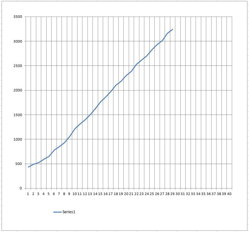 Op de x-as Sue's levensdagen, en op de y-as natuurlijk zijn gewicht in gram. No red flags, enjoy ;-)