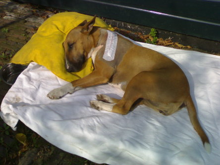 15 mei: Tosca is vandaag gesteriliseerd. Ritsluiting van 10 cm lang op haar buikje... zware operatie en het duurt ongeveer 2 dagen tot ze weer een beetje op de been is. Paar dagen vrij genomen om verpleging te doen.