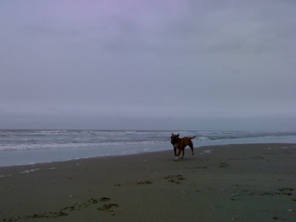 Zaterdag 7 januari: hondenstrand IJmuiden, aanrader! Ga ook eens bij de Beach Inn iets drinken, It's somethin' else: 20 door elkaar loslopende honden en gezellie mensen!